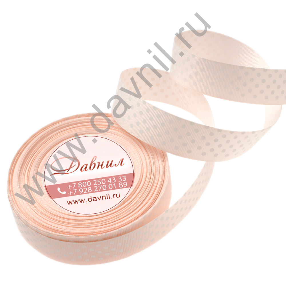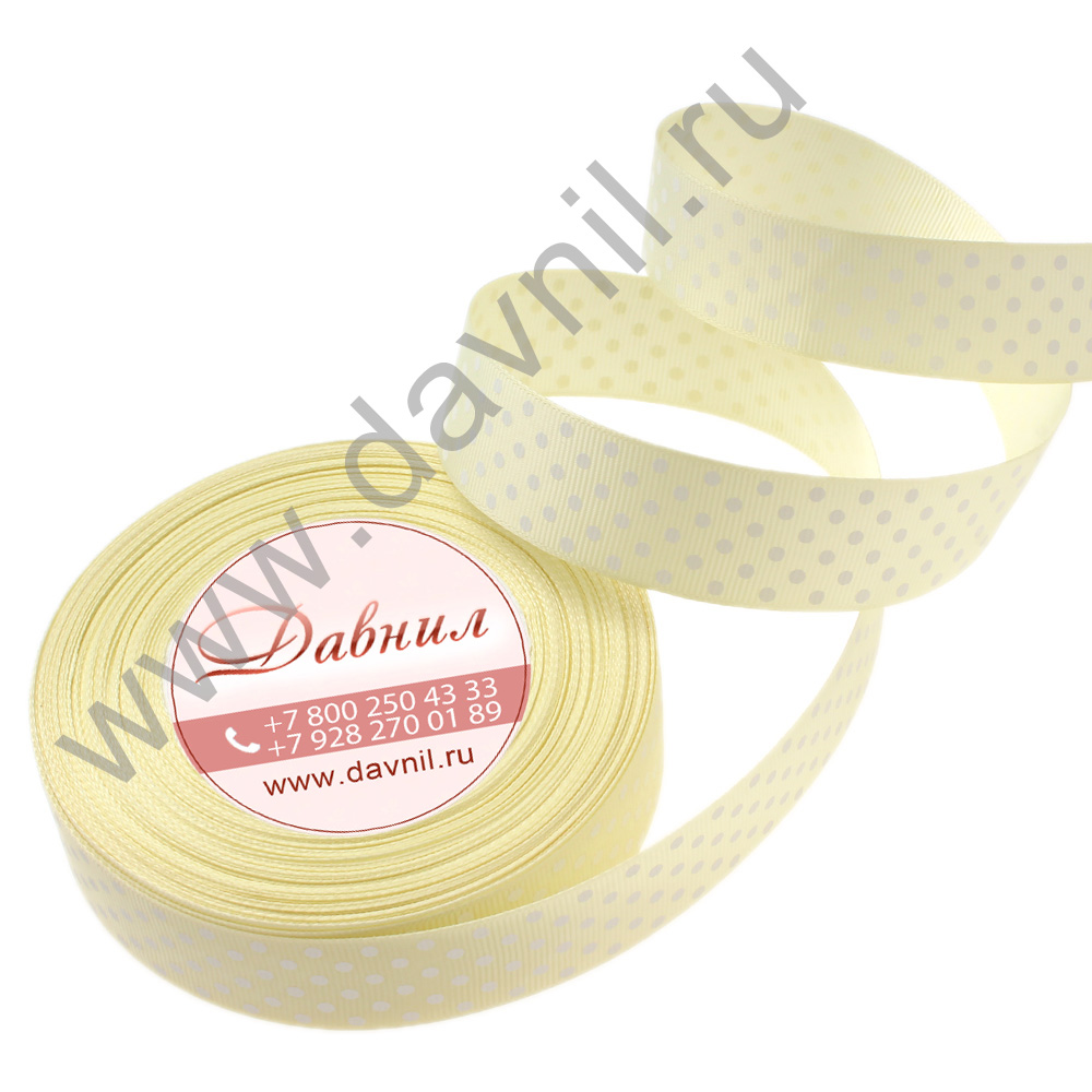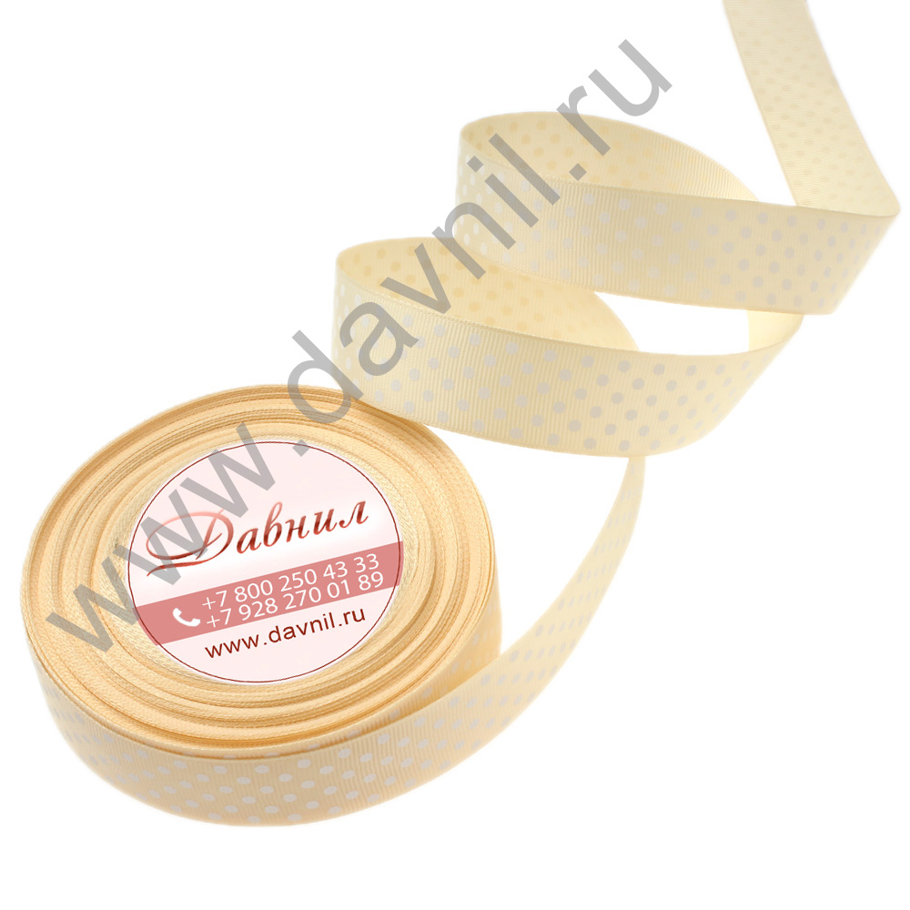 Лента репсовая мелкий горошек 2,5 см 25 ярдов айвори 8