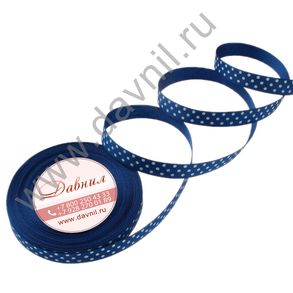 Лента репсовая мелкий горошек 1,5 см 25 ярдов синяя 40