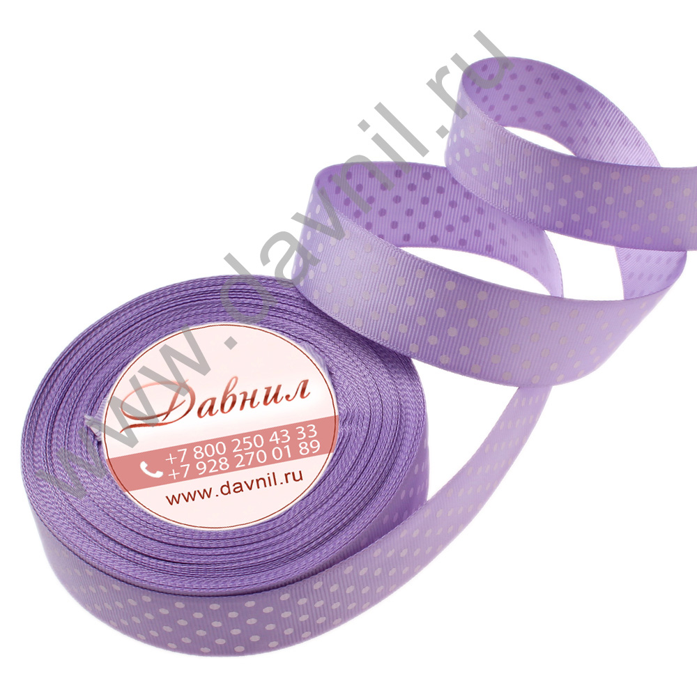 Лента репсовая мелкий горошек 2,5 см 25 ярдов сиреневая 21