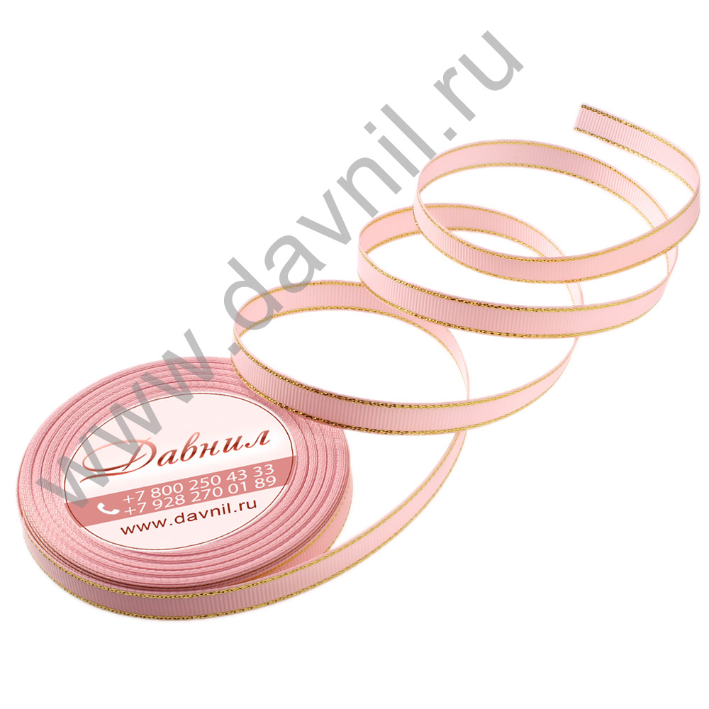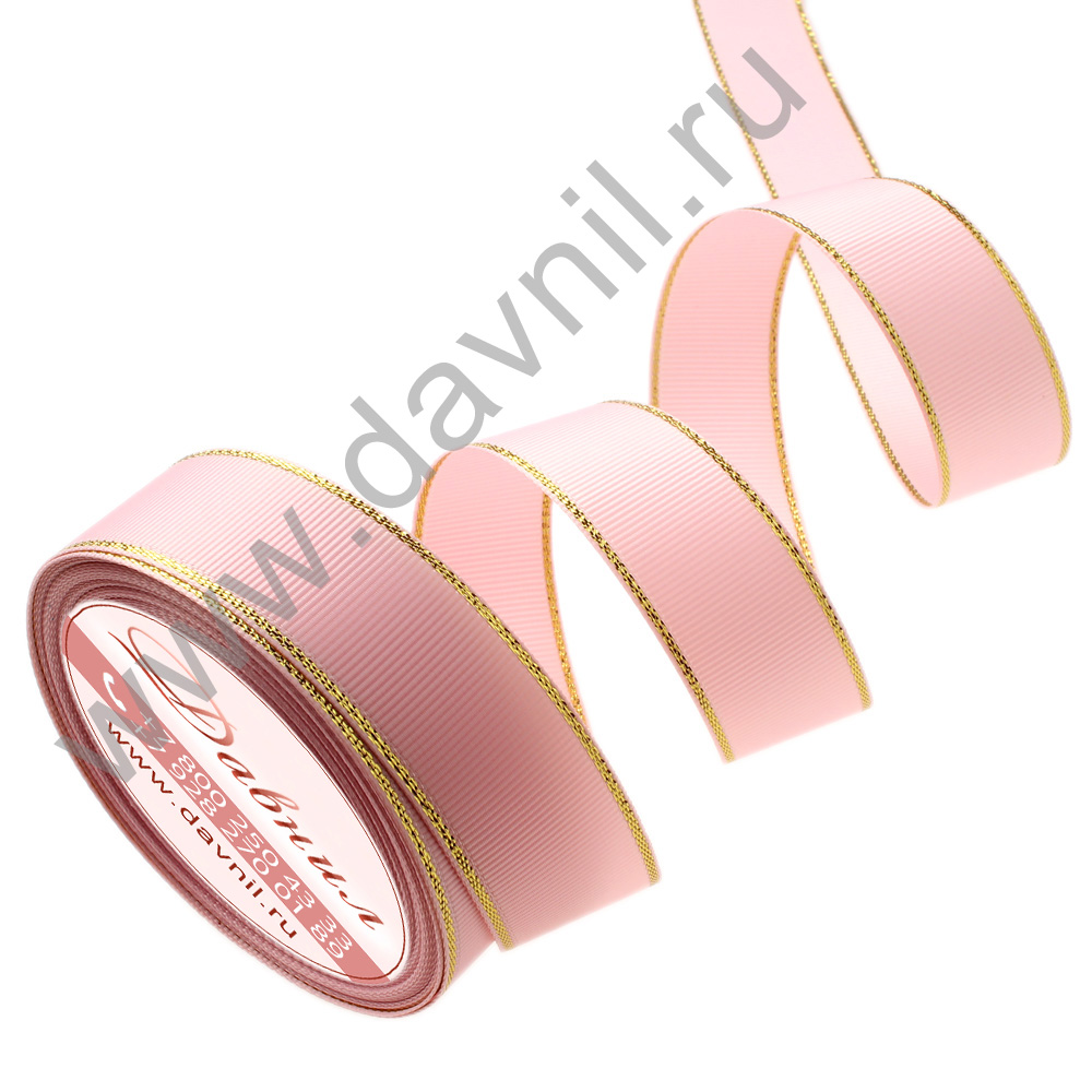 Лента репсовая с золотым люрексом 1 см*20 ярдов розовая 04