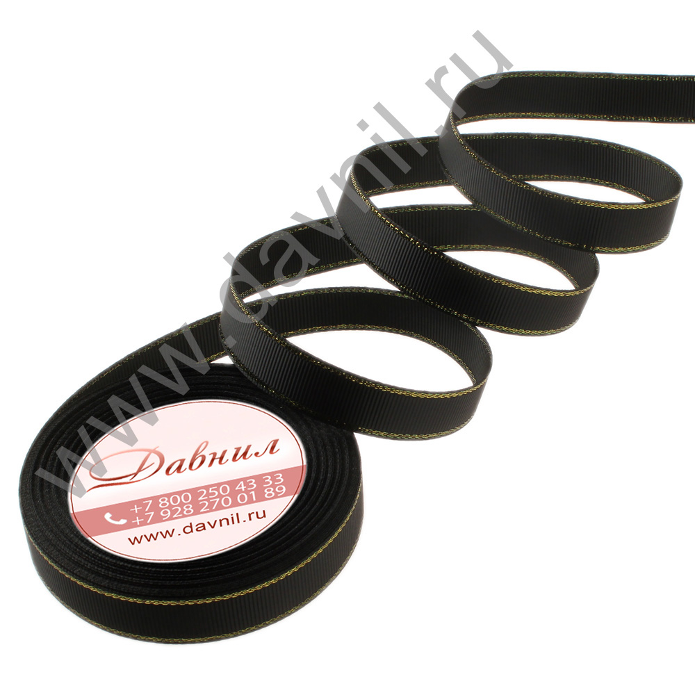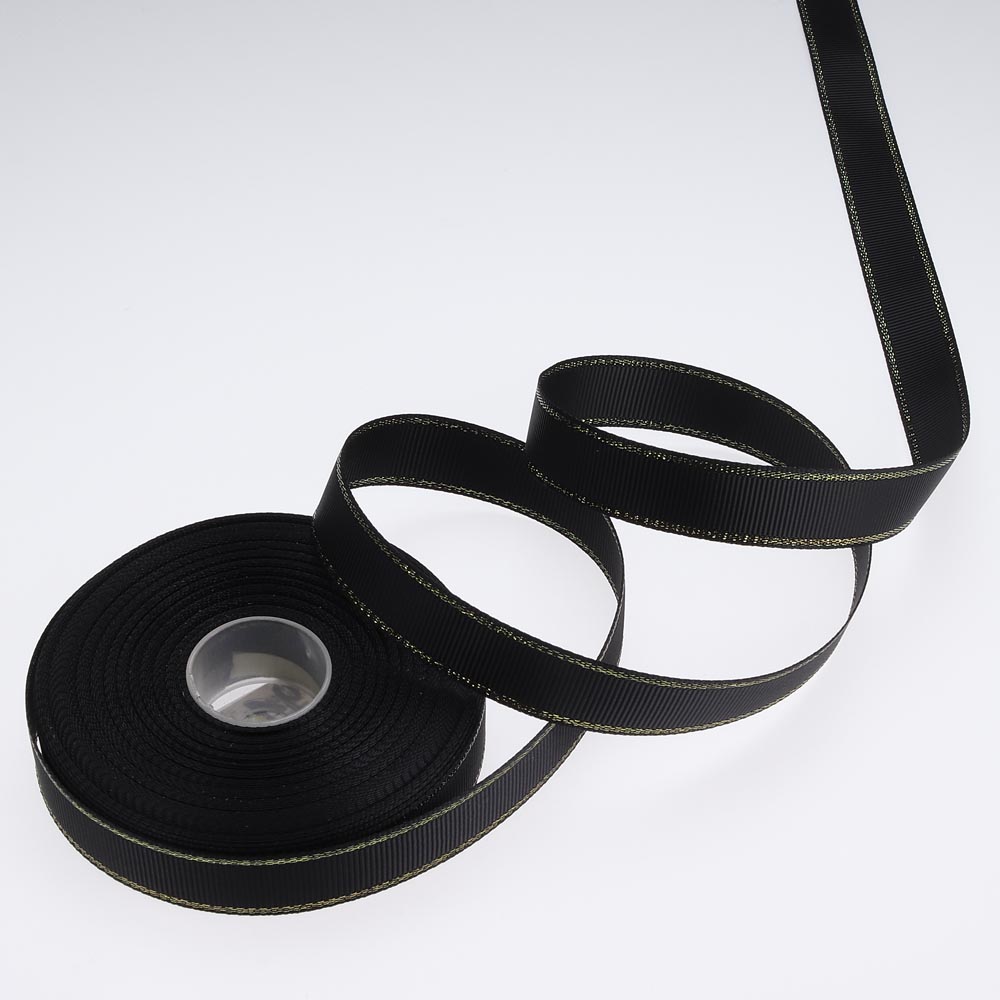 Лента репсовая с золотым люрексом 1 см*20 ярдов черная 039