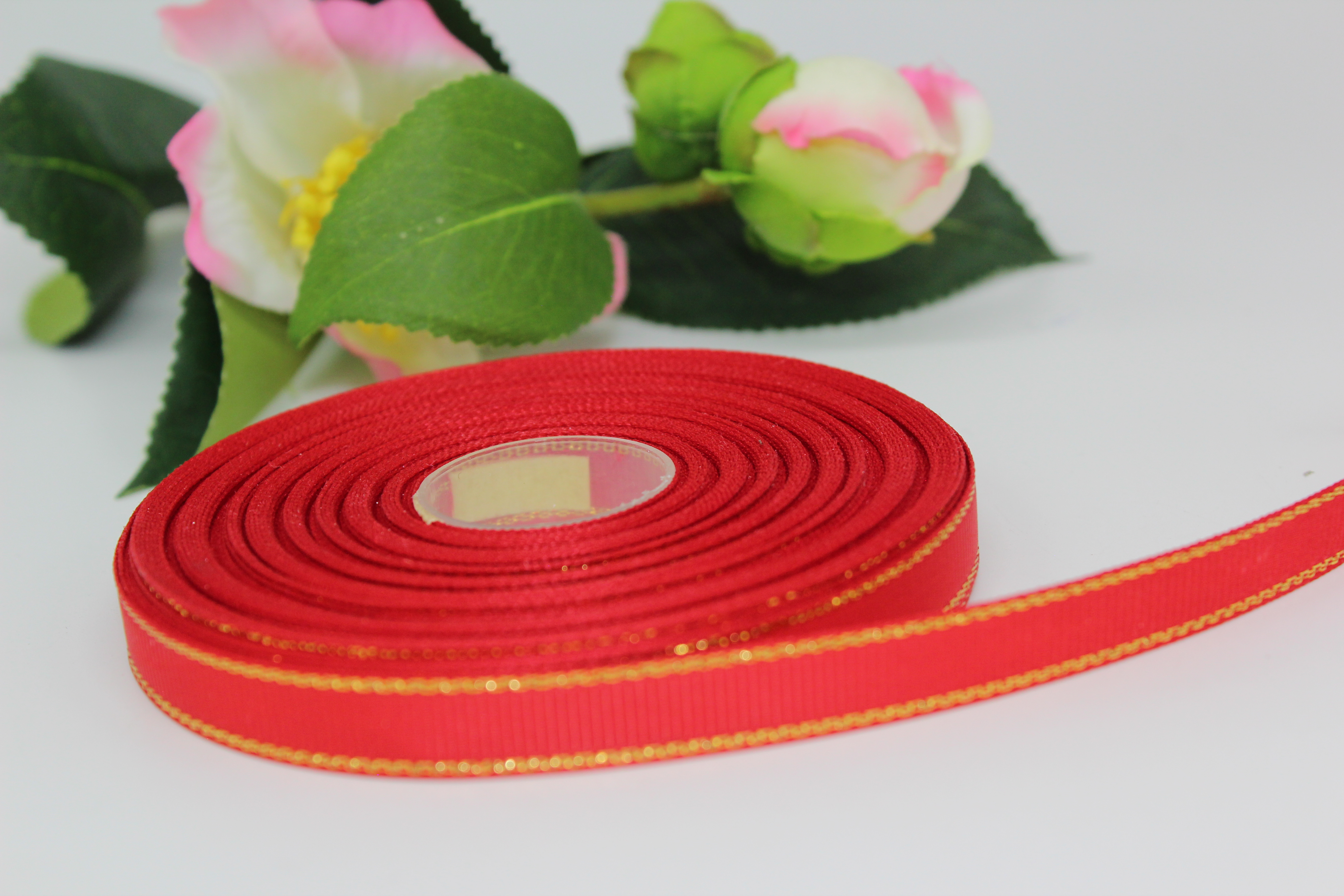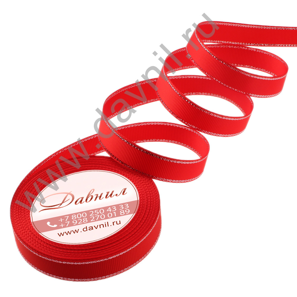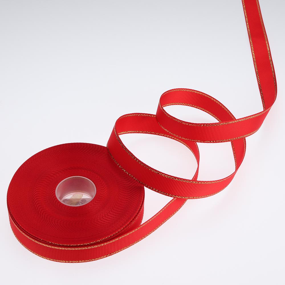 Лента репсовая с золотым люрексом 1 см*20 ярдов красная 26