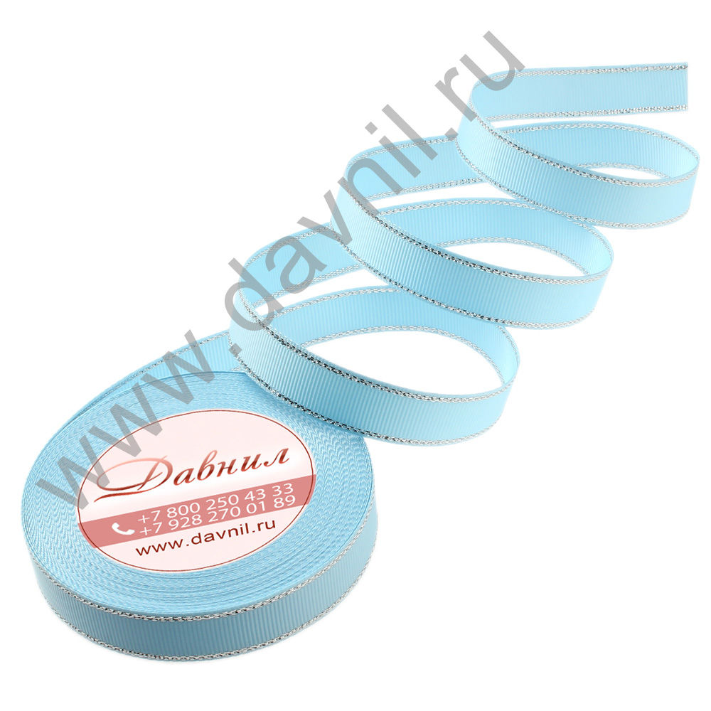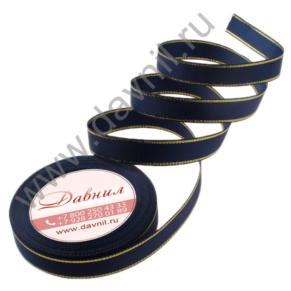 Лента репсовая с золотым люрексом 1,5 см*20 ярдов синяя 38