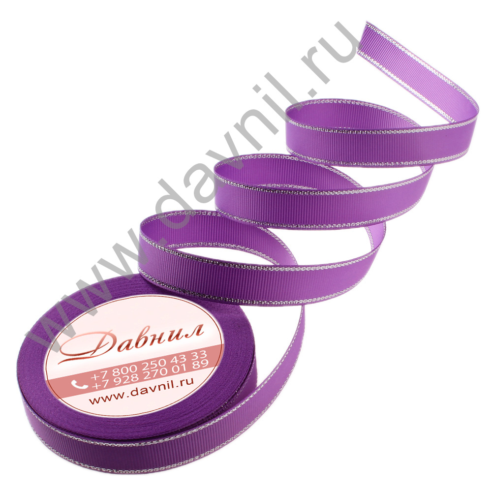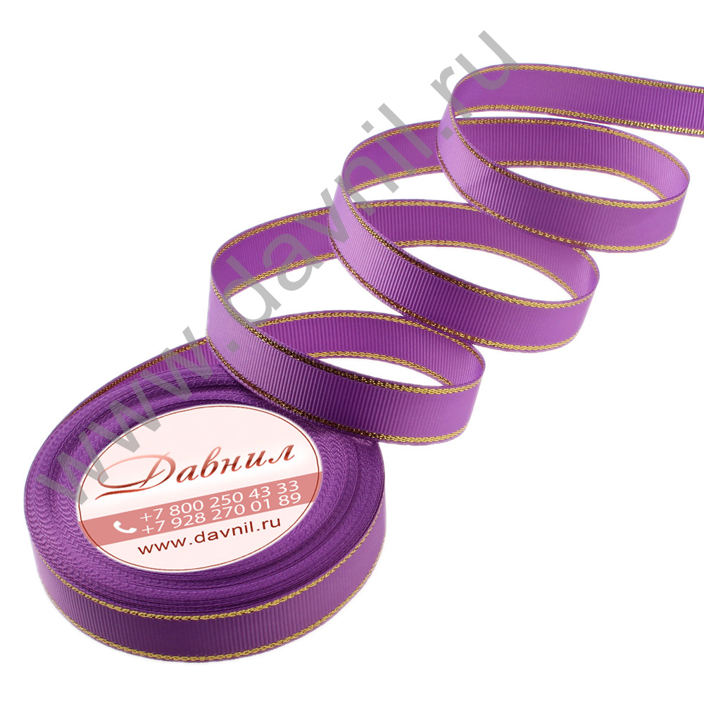 Лента репсовая с золотым люрексом 1 см*20 ярдов сиреневый 21