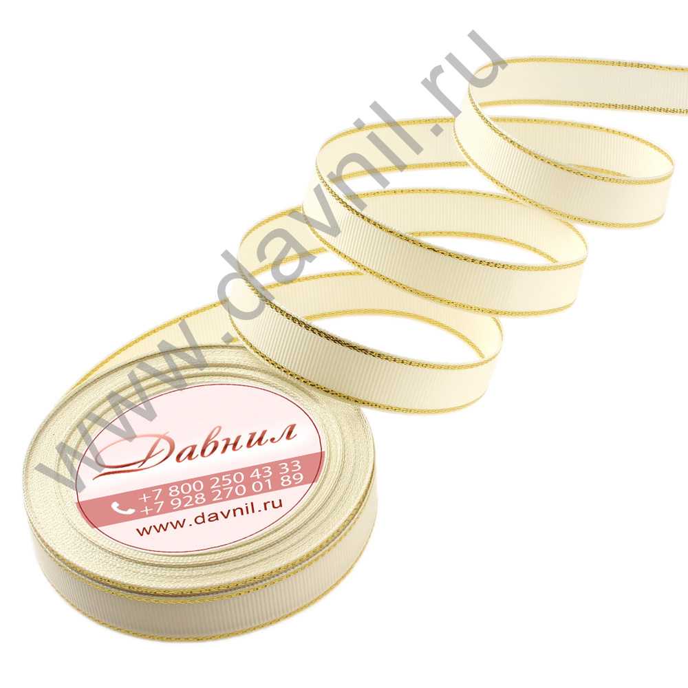 Лента репсовая с золотым люрексом 1,5 см*20 ярдов айвори 08