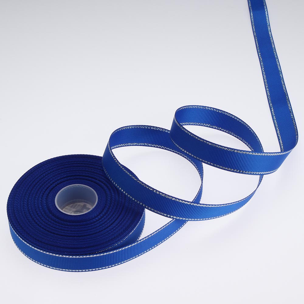 Лента репсовая с золотым люрексом 1 см*20 ярдов синяя 38