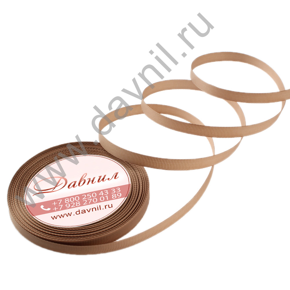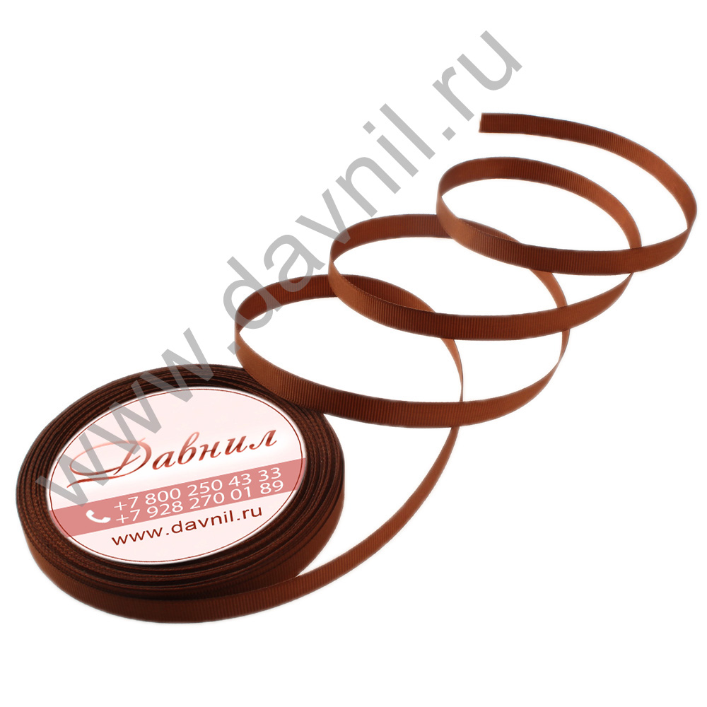 Лента репсовая 1 см 25 ярдов коричневая 209