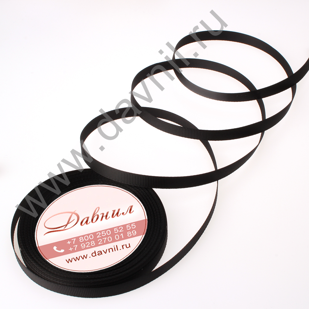 Лента репсовая 1 см 25 ярдов чёрная 039