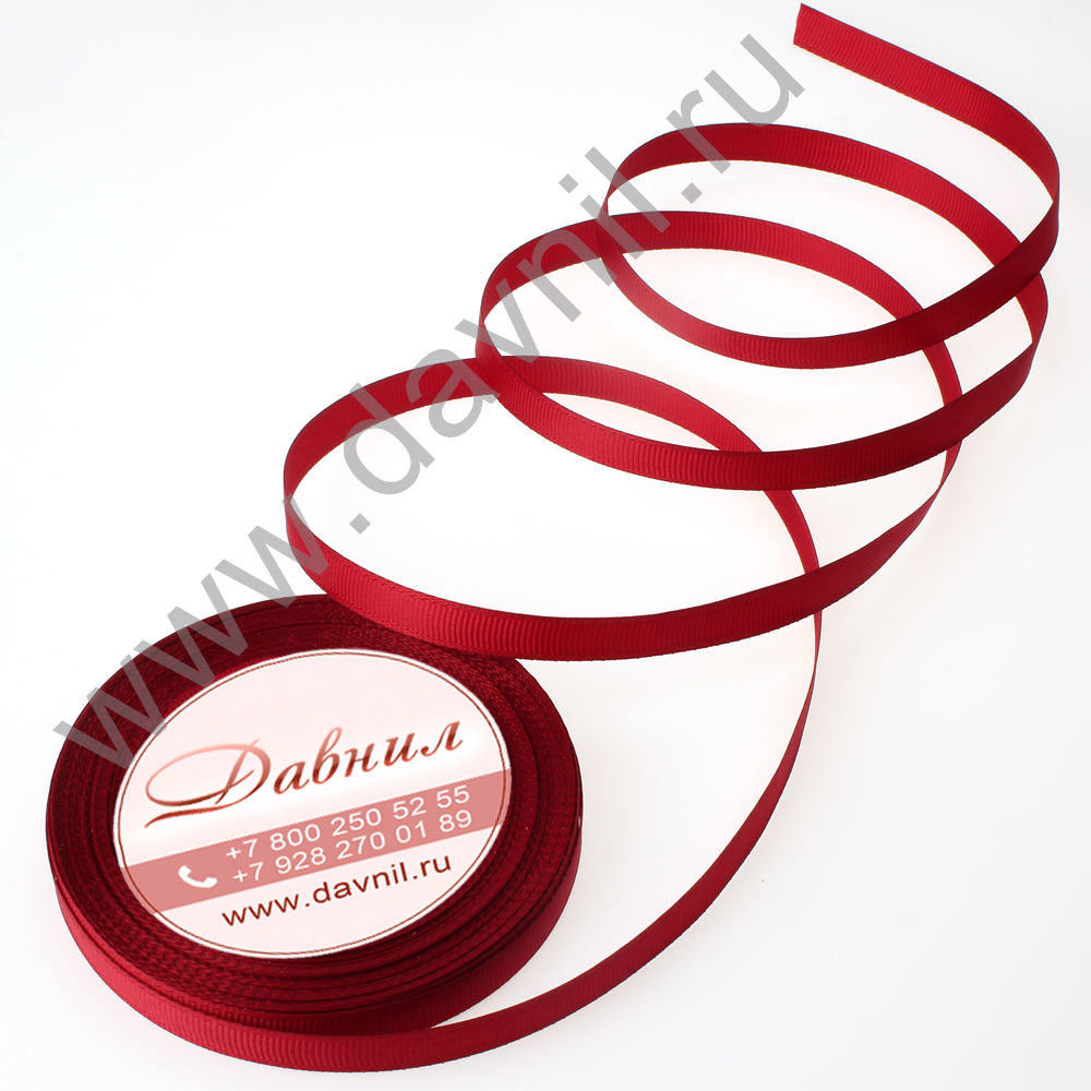 Лента репсовая 1 см 25 ярдов бордовая 037