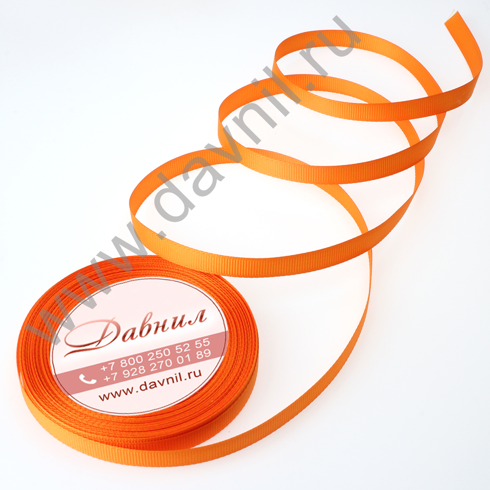 Лента репсовая 1 см 25 ярдов оранжевая 024