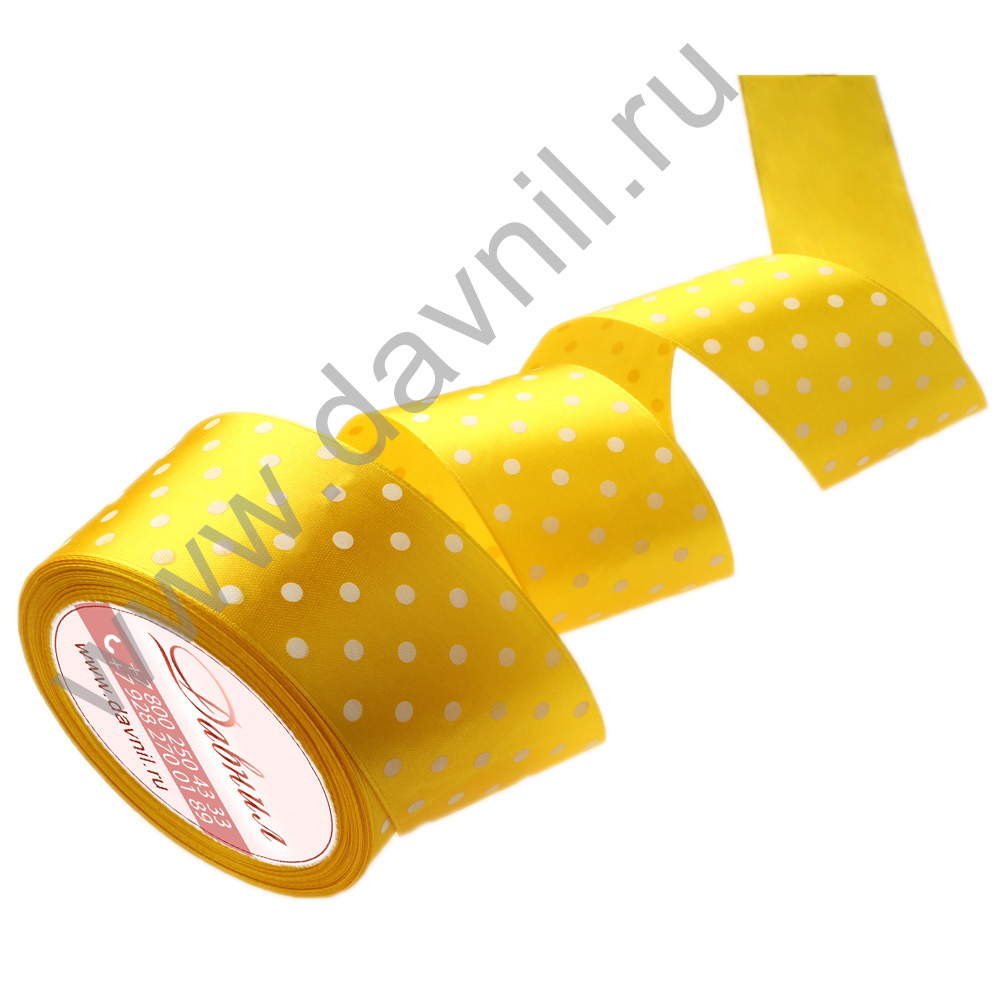 Лента атласная средний горошек 5 см*25 ярдов желтая 132