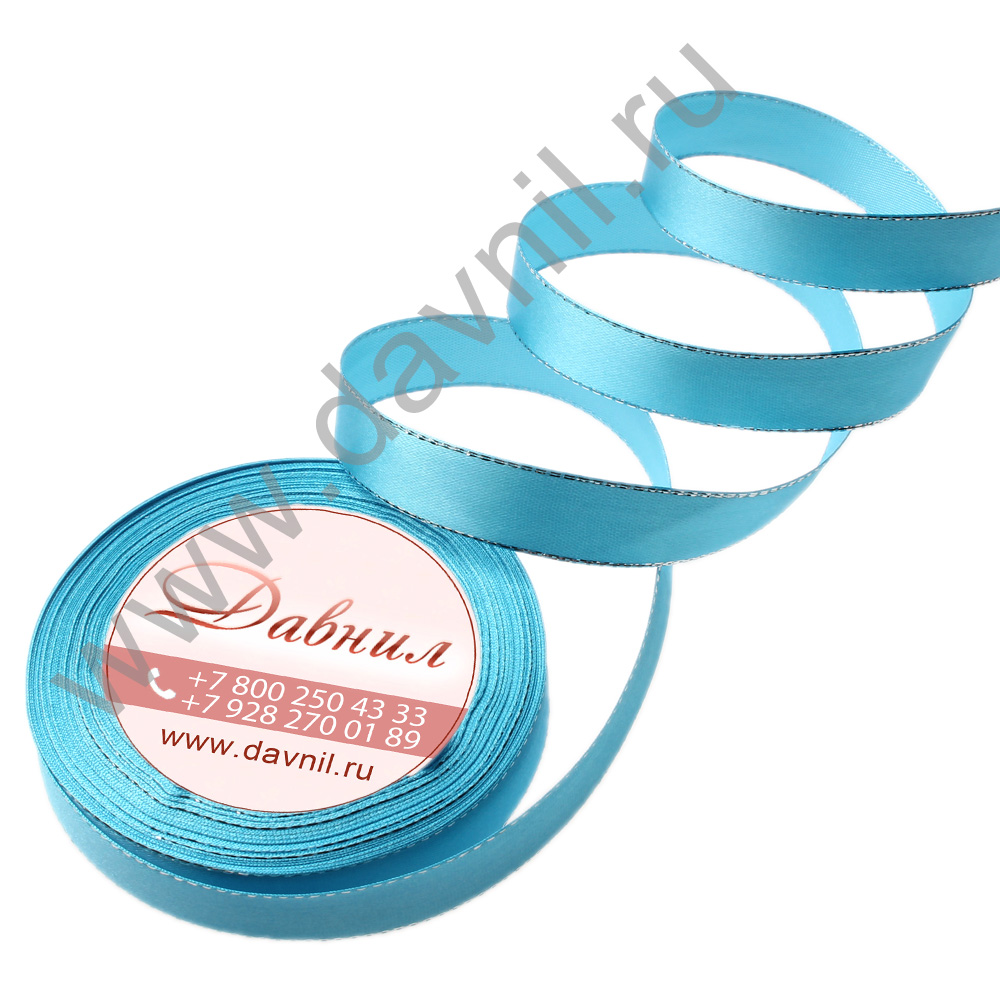 Лента атласная с серебряным люрексом 1,5 см 20 ярдов голубая 187