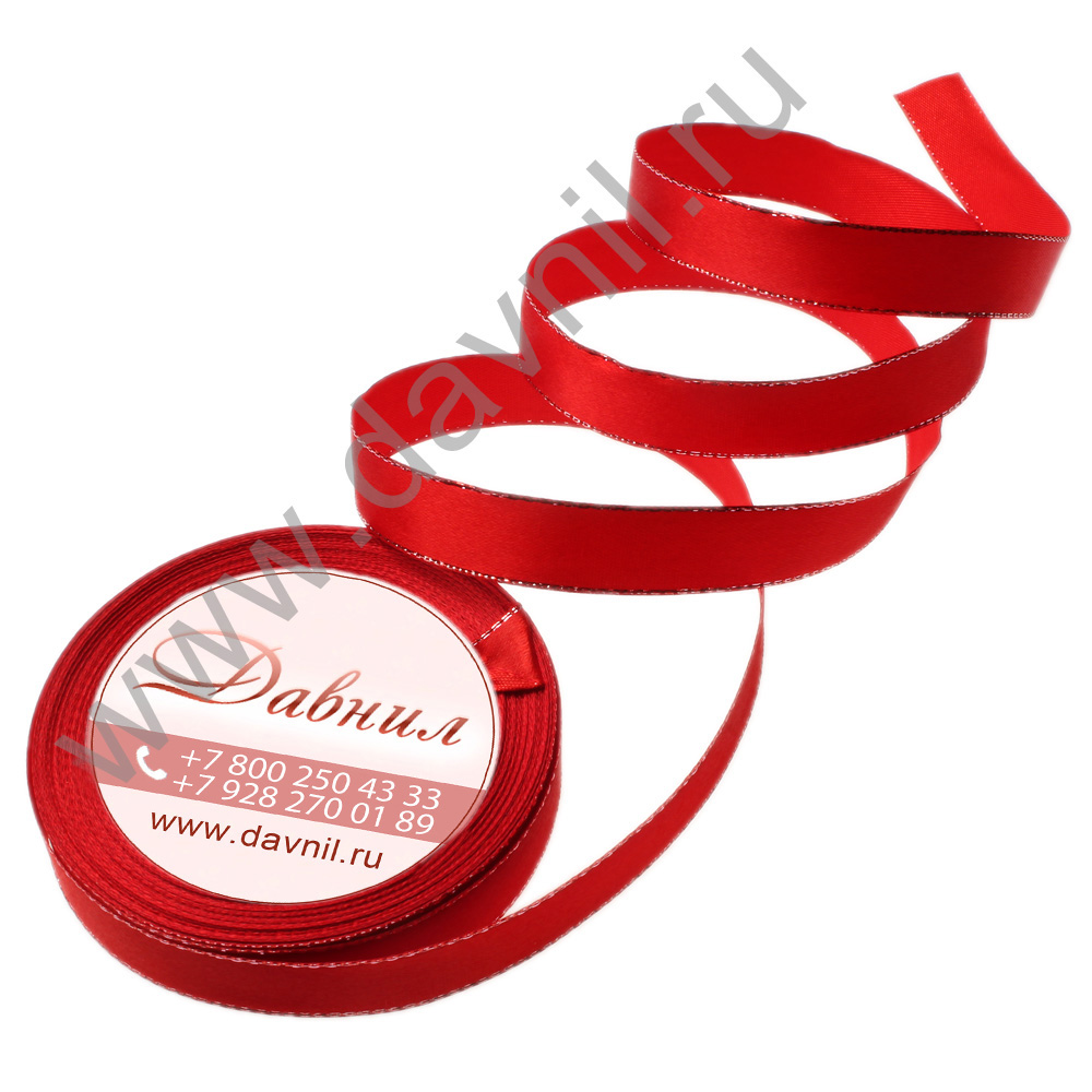 Лента атласная с серебряным люрексом 1,5 см 20 ярдов красная 26