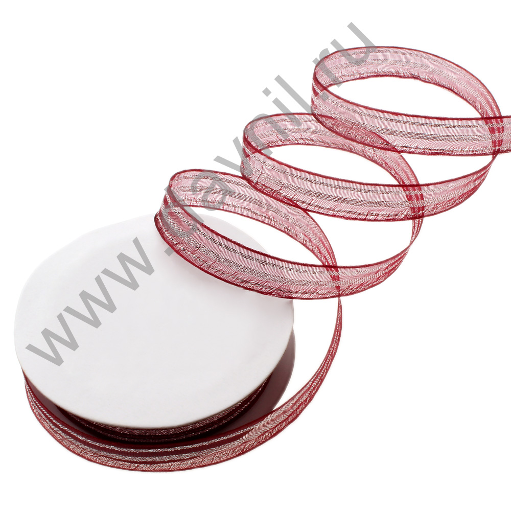 Лента органза 1,5 см 5 ярдов с полосками бордо