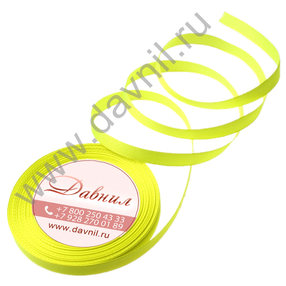 Лента атласная 1 см 25 ярдов жёлтая 058