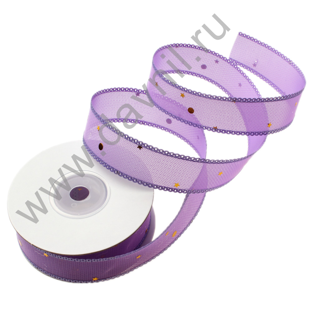Лента атласная с золотым люрексом 4 см 20 ярдов сиреневая 021
