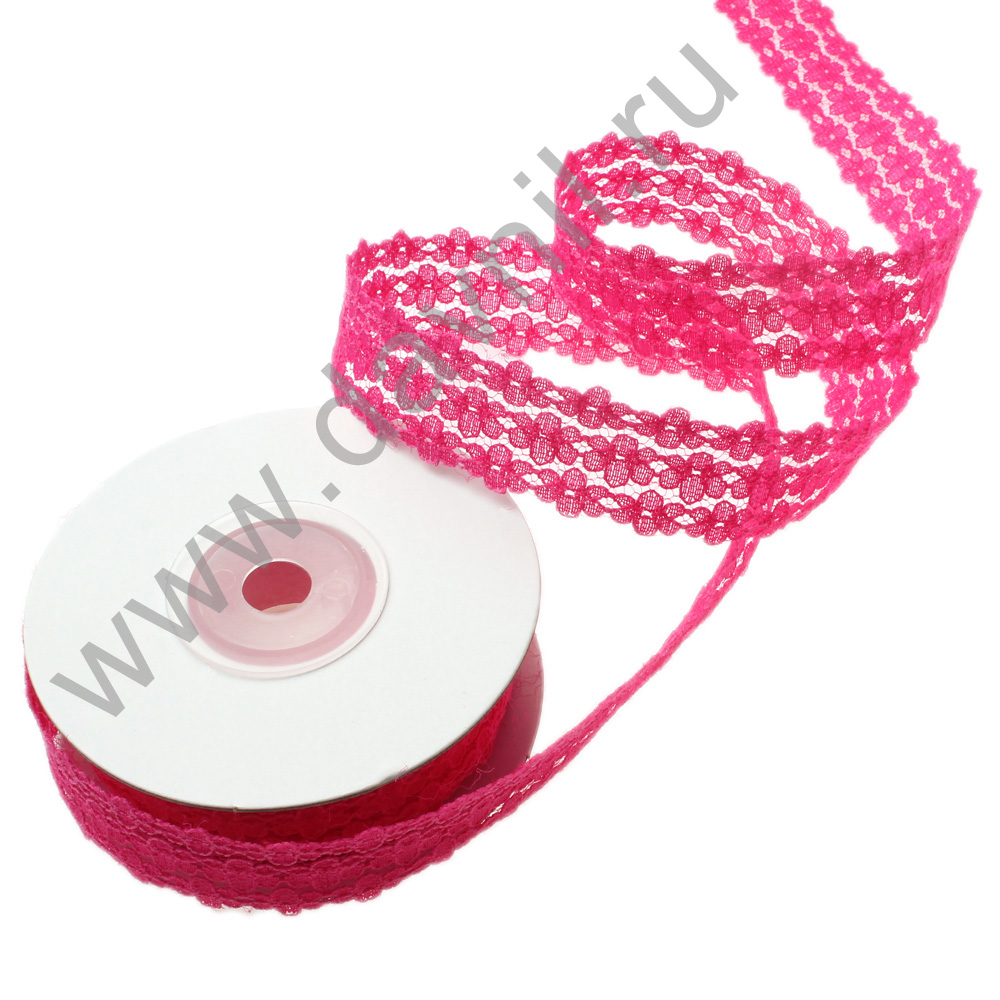 Лента репсовая с прорезанными цветочками 2,5 см 25 ярдов фуксия