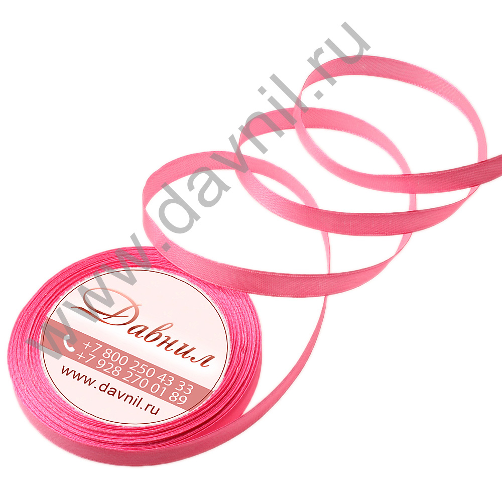 Лента атласная 1 см 25 ярдов розовая 005