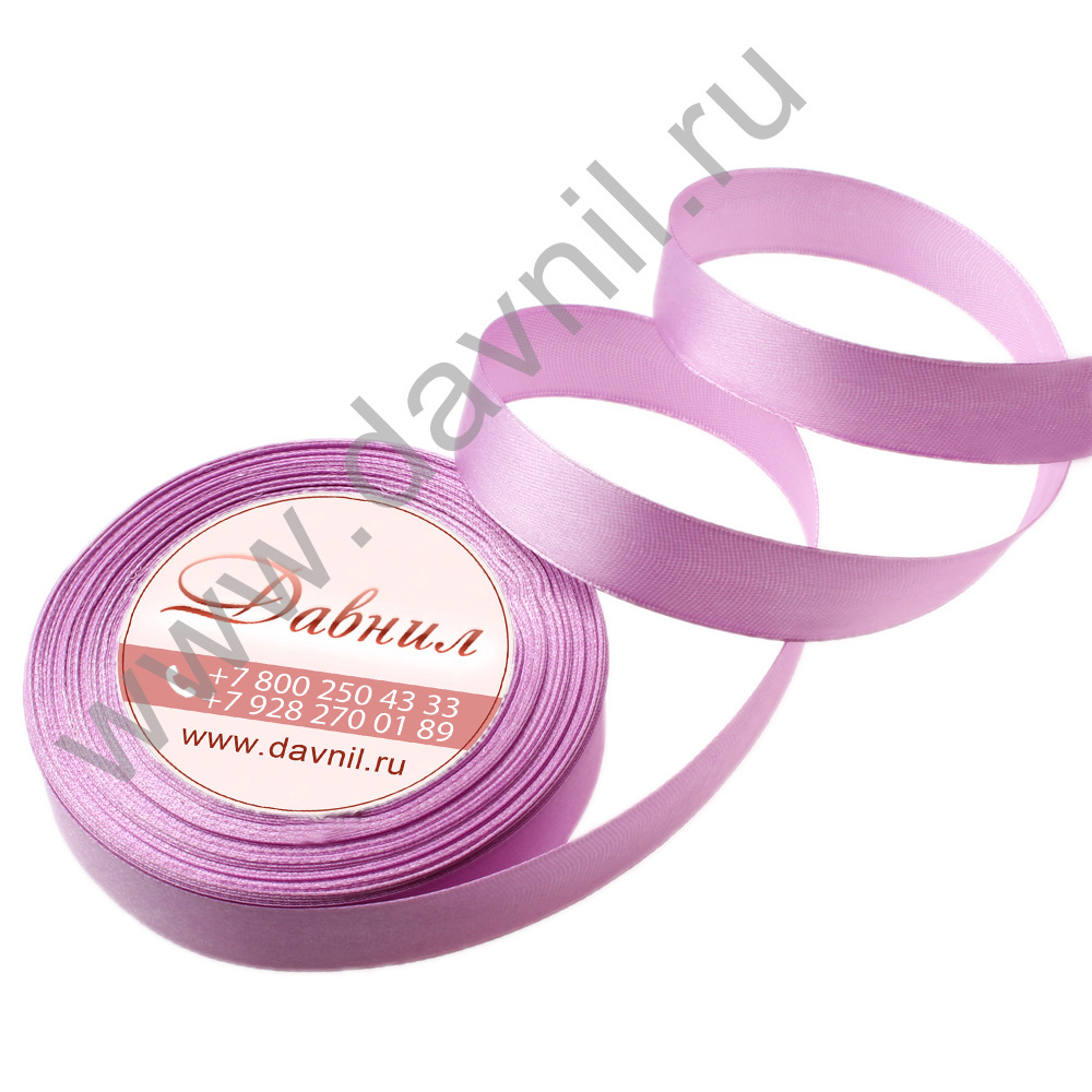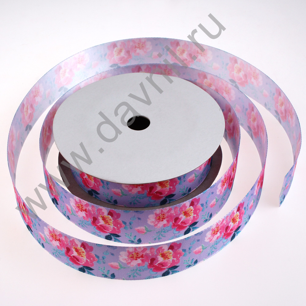 Лента атласная декорированная 2,5 см 10 ярдов "Пионы и мак" сиреневая