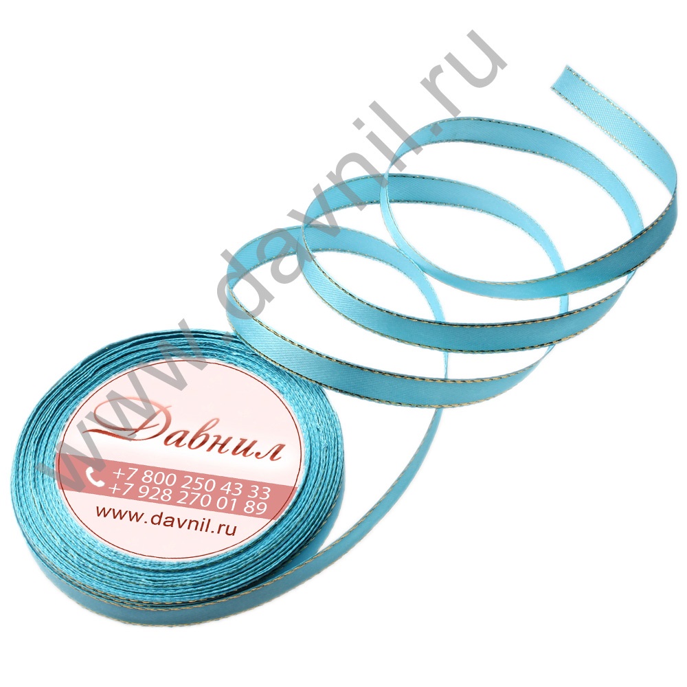 Лента атласная декоративная "Бабочки" 2,5 см*15 ярдов, голубая
