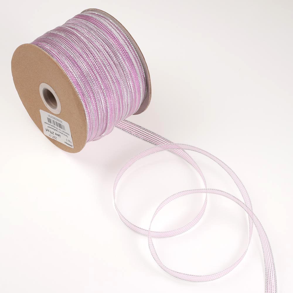 Лента сетка с серебрянным люриксом 1 см 100 ярдов розовая