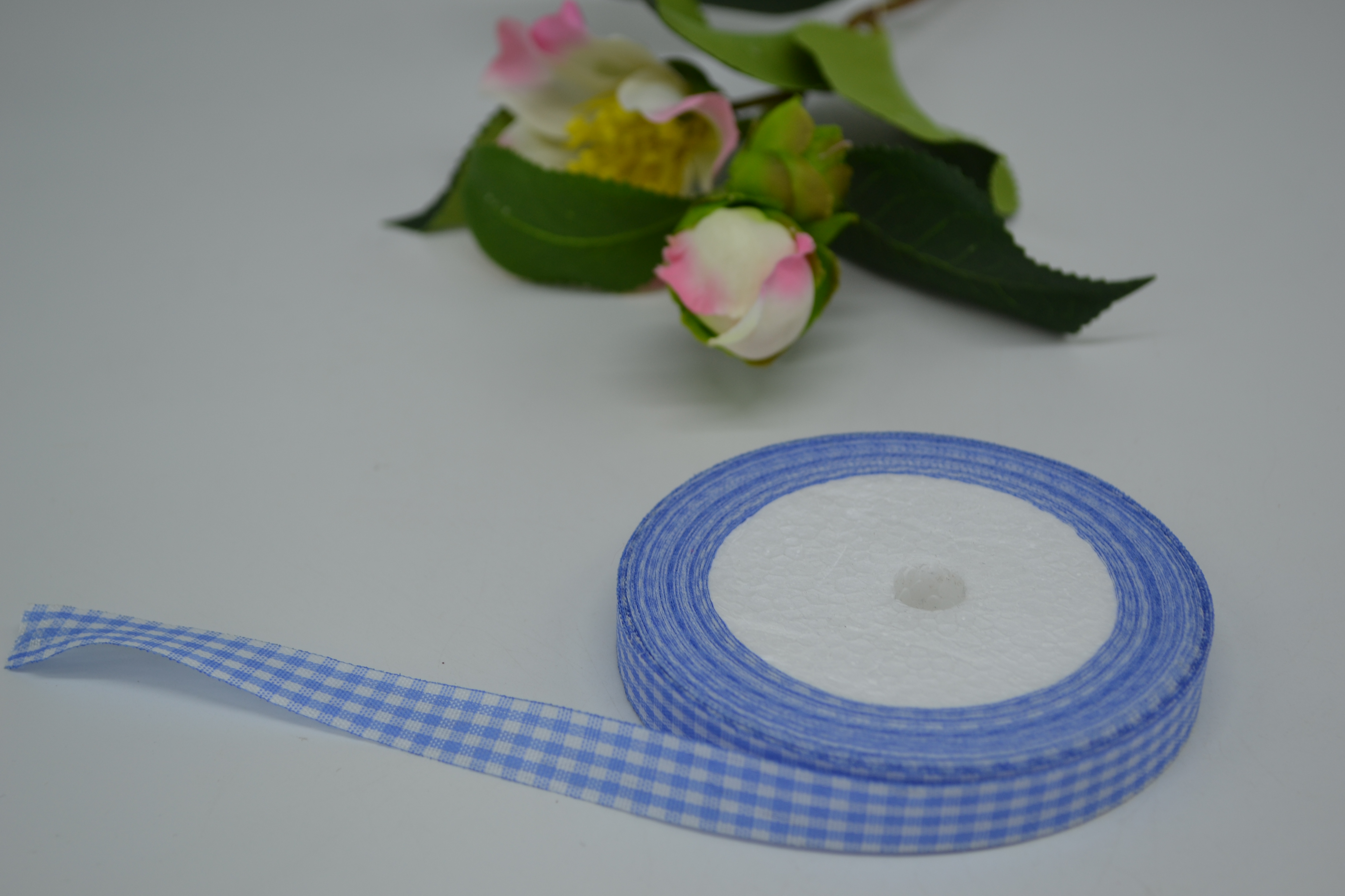 Лента маленькая клетка 1,2 см 25 ярдов голубая
