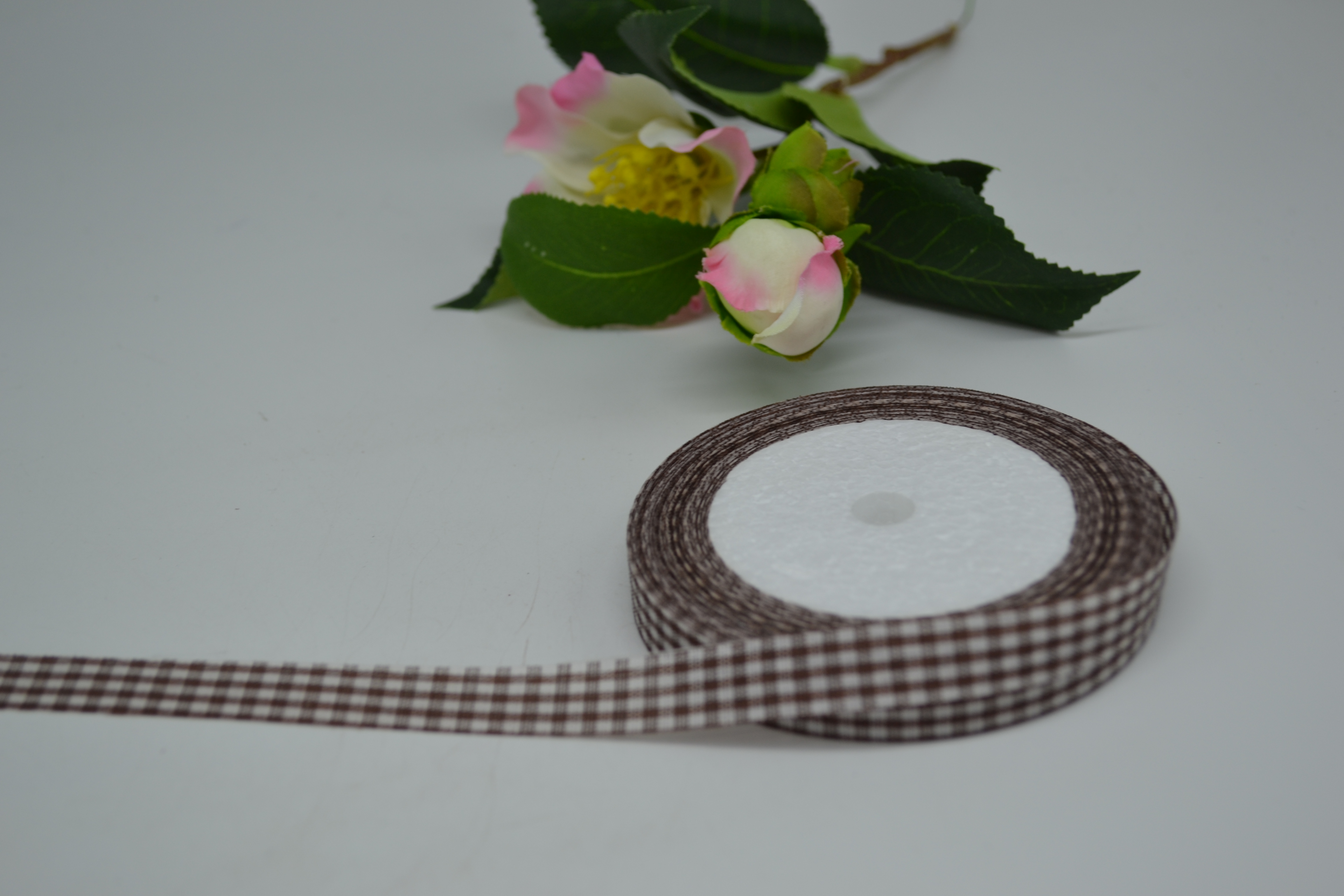 Лента маленькая клетка 1,2 см 25 ярдов коричневая