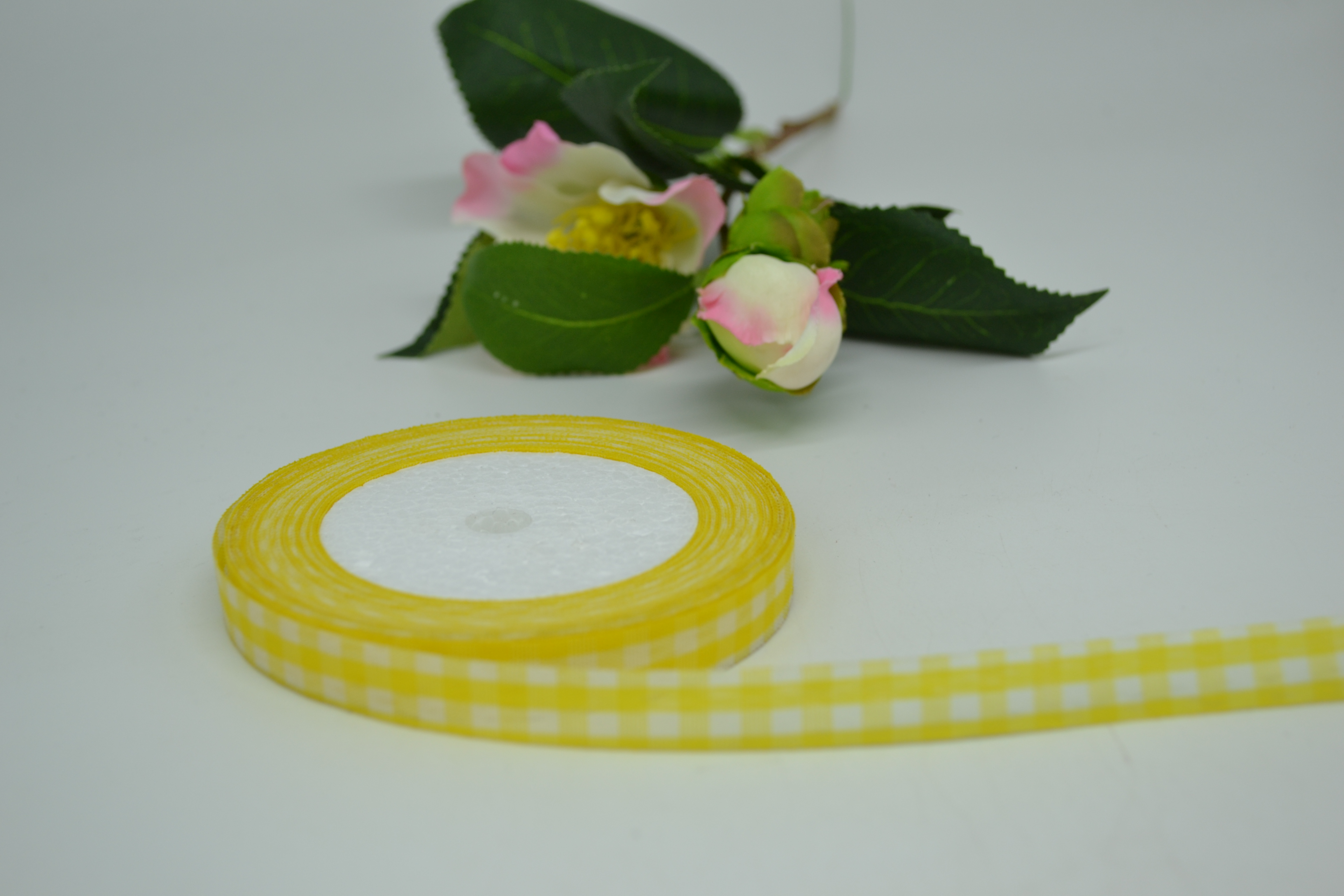 Лента 1,2 см большая клетка 25 ярдов жёлтая