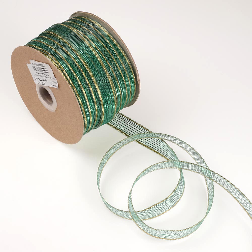 Лента сетка с золотым люрексом 1,5 см 100 ярдов зелёная