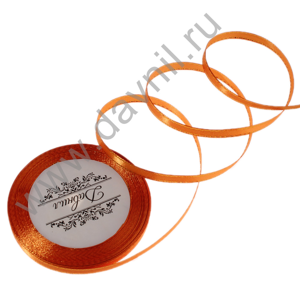 Лента атласная с серебрянным люрексом 0,6 см*20 ярдов оранжевая 025