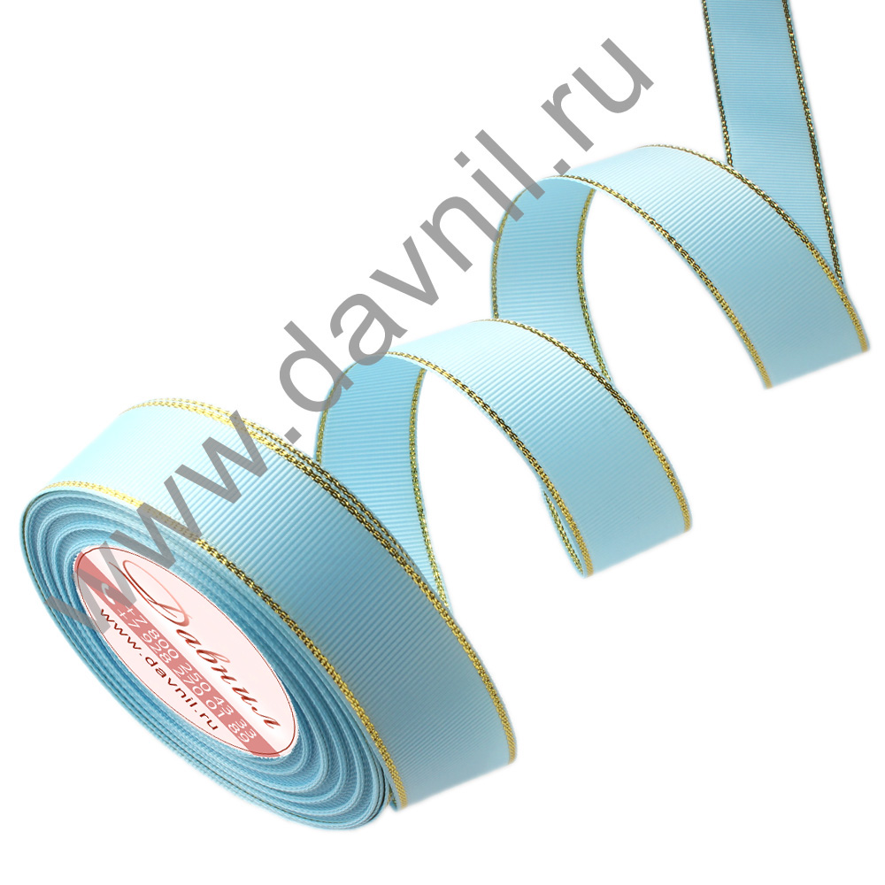 Лента репсовая с золотым люрексом 2,5 см*20 ярдов  голубая 187