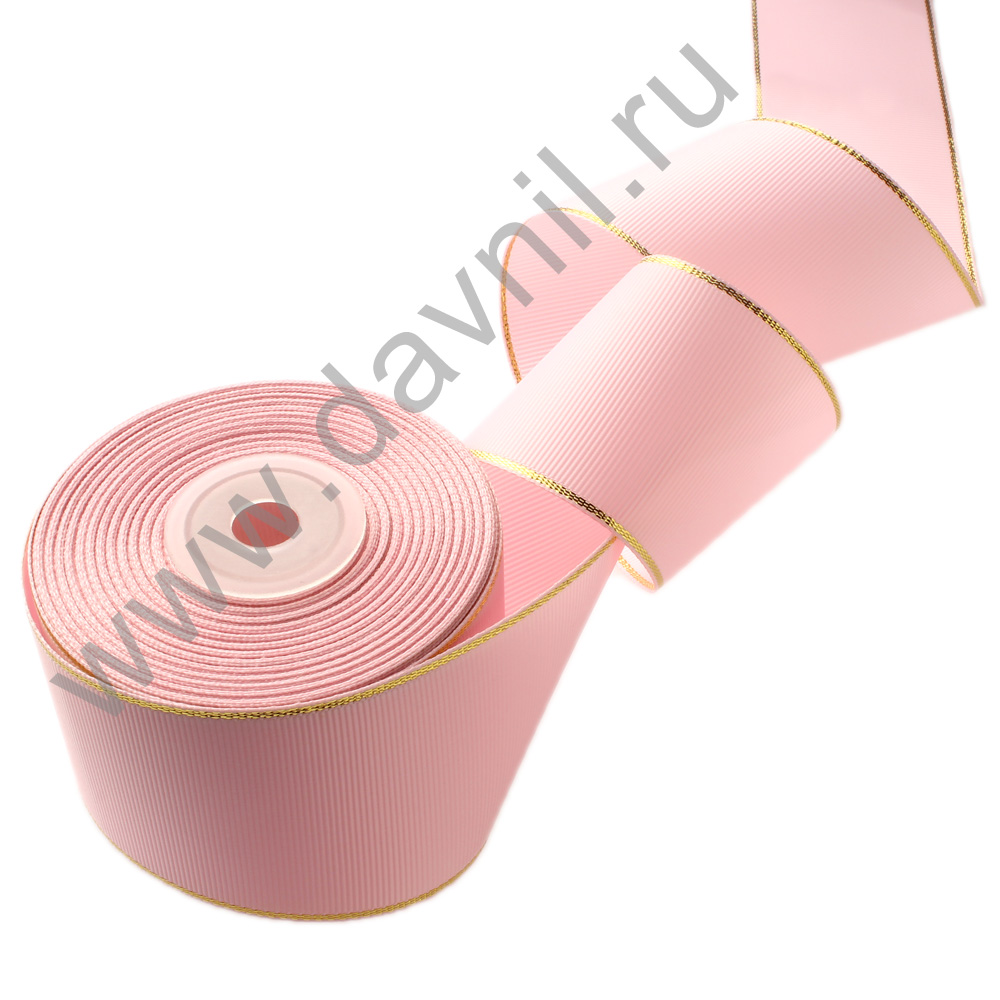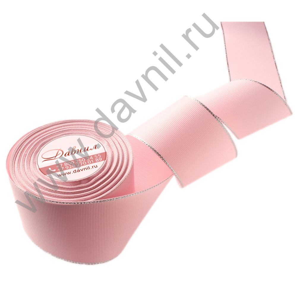 Лента репсовая с серебряным люрексом 5 см*20 ярдов розовая 04
