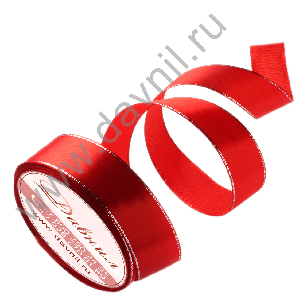 Лента атласная с серебряным люрексом 2,5 см 20 ярдов красная 026