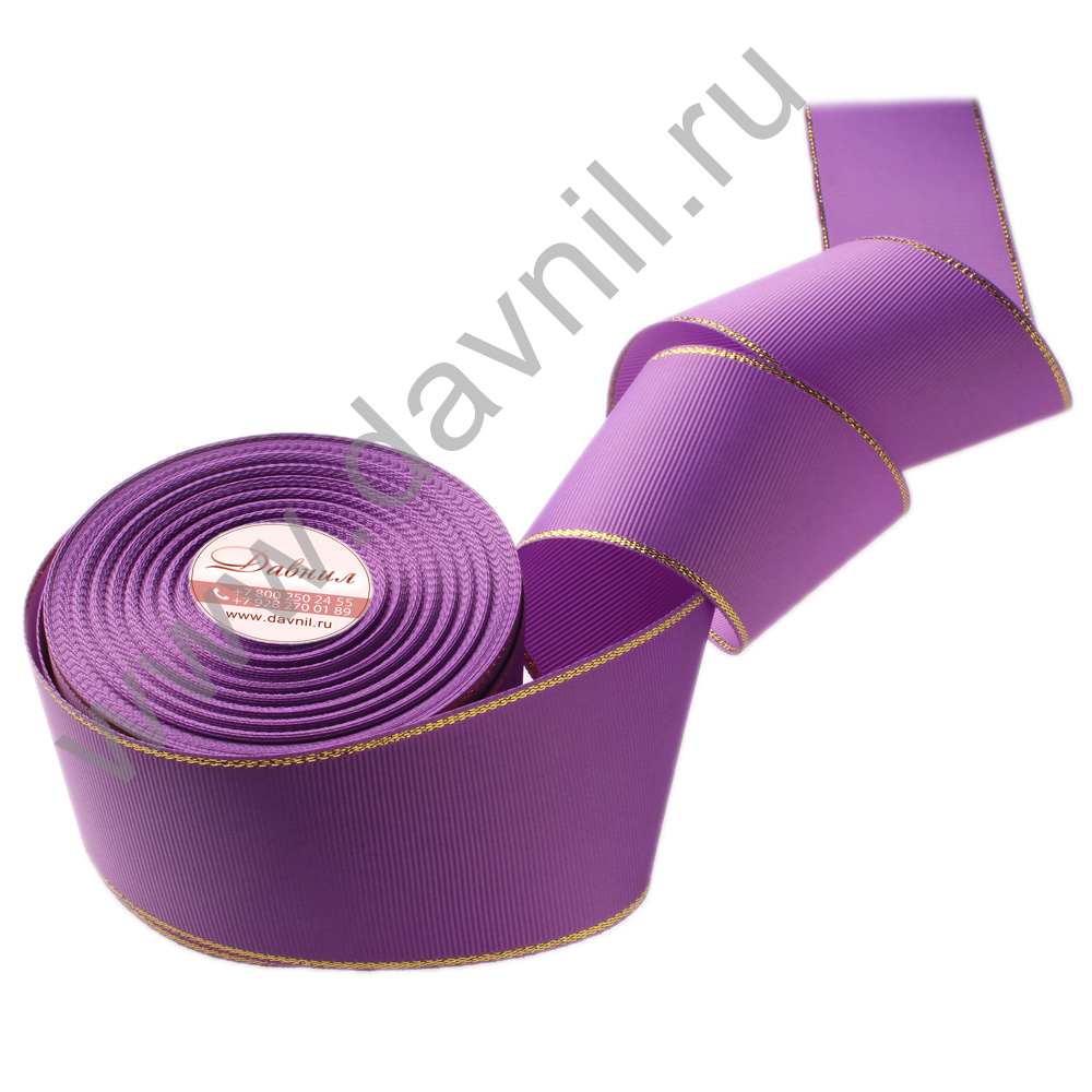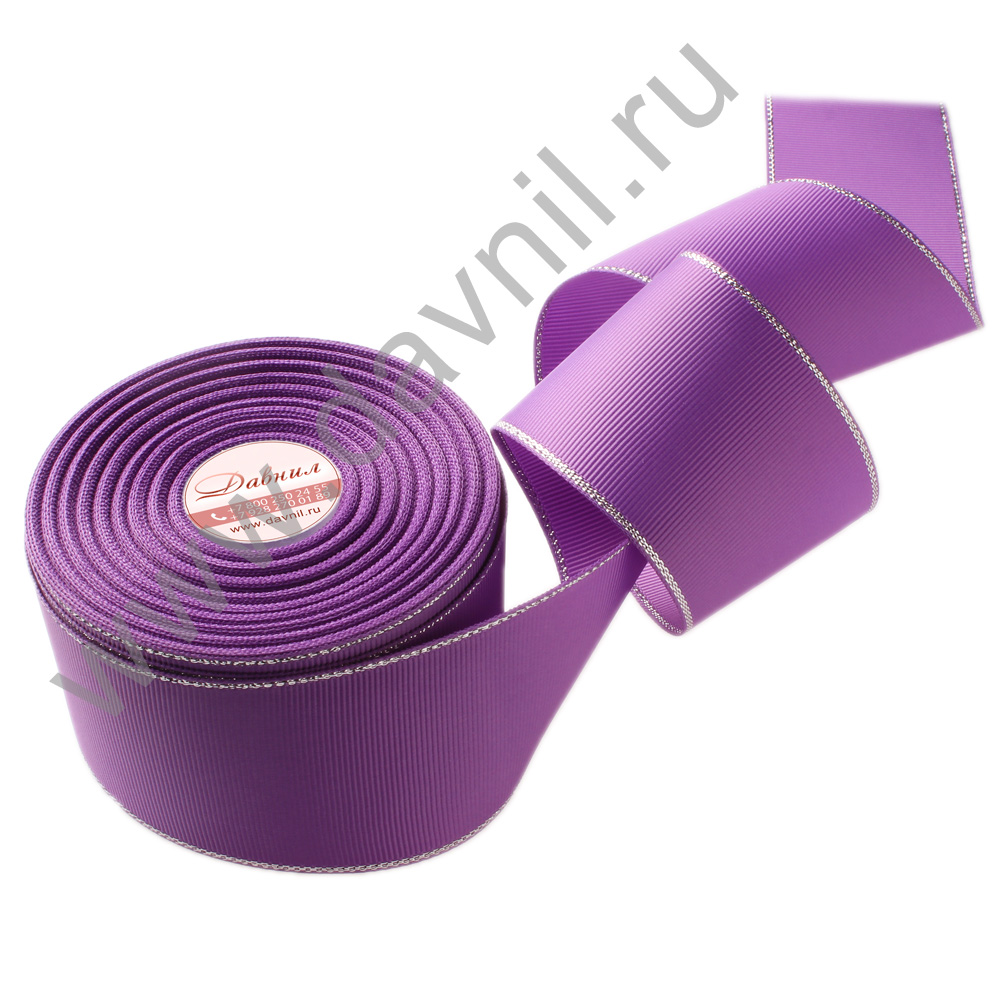 Лента репсовая с серебряным люрексом 5 см*20 ярдов сиреневая 21