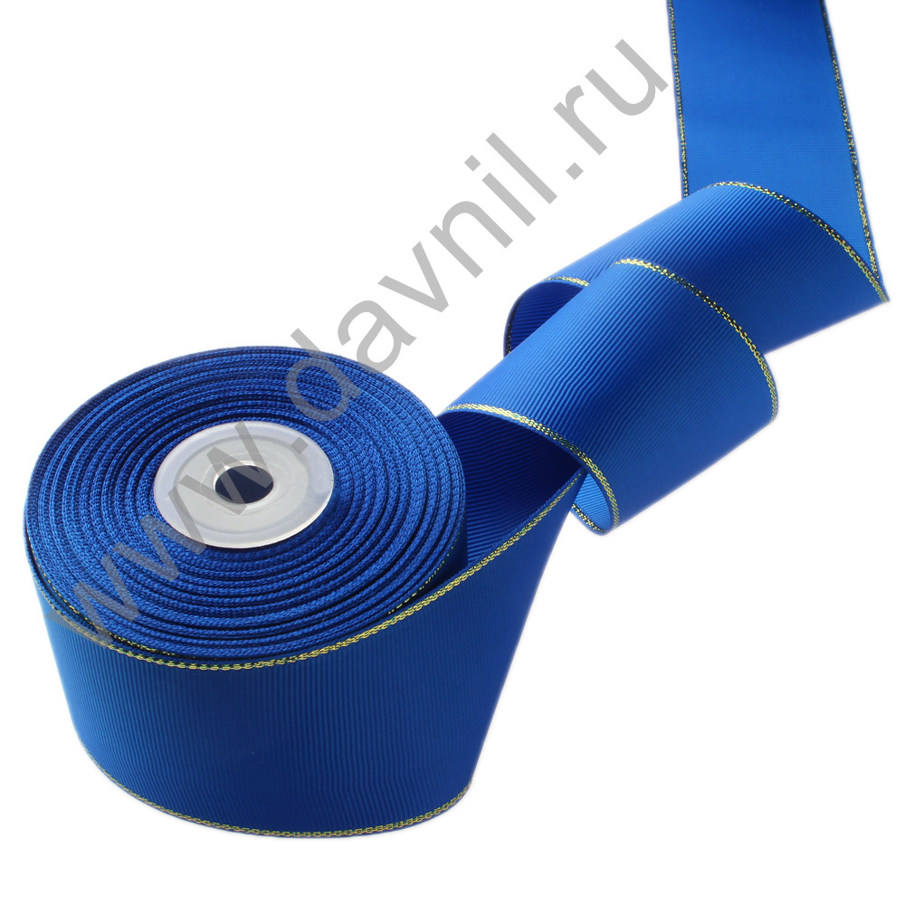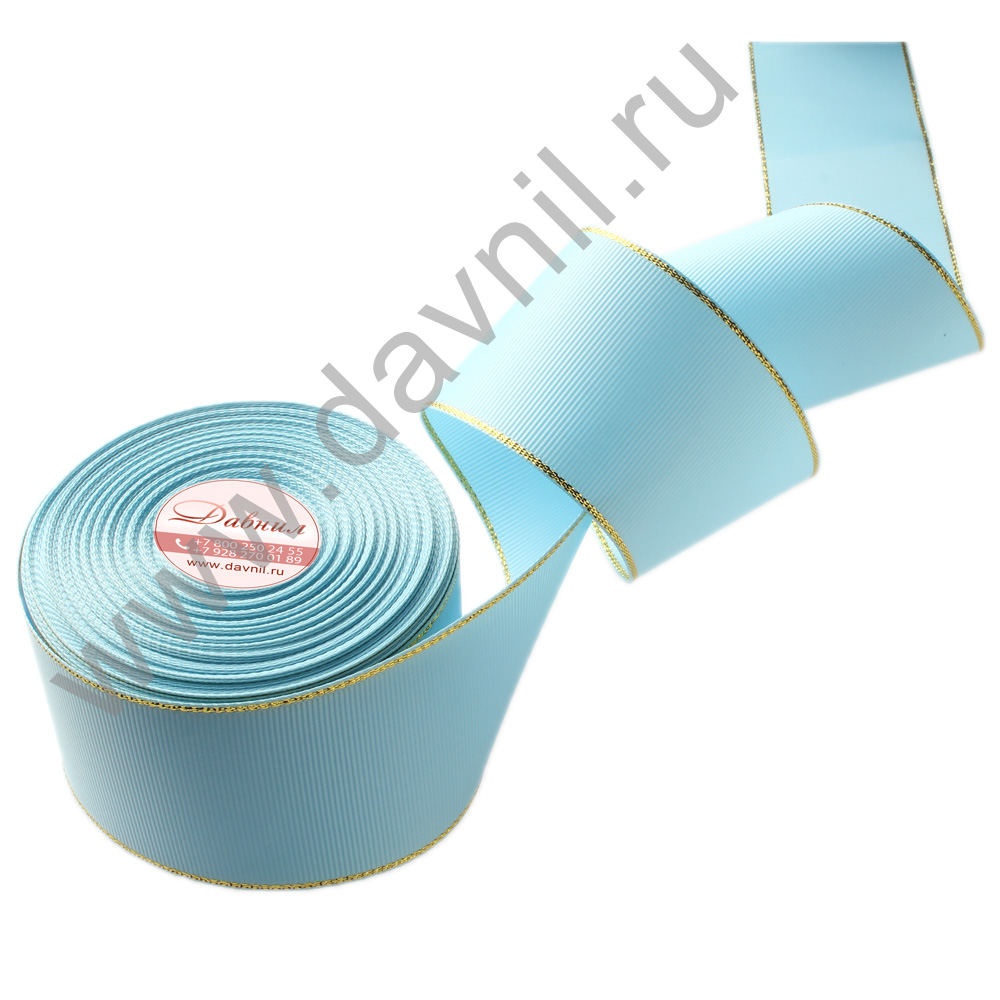 Лента репсовая с золотым люрексом 5 см*20 ярдов голубая 187