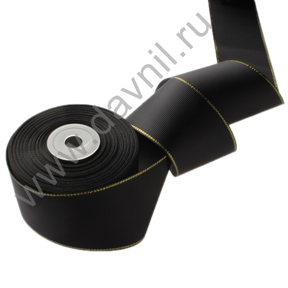 Лента репсовая с серебряным люрексом 5 см*20 ярдов чёрная 39