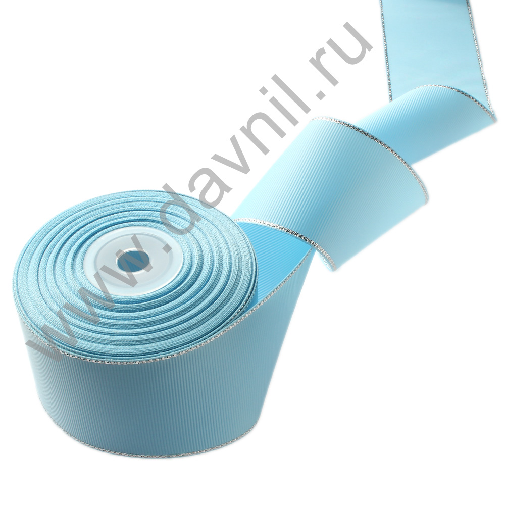 Лента репсовая с серебряным люрексом 5 см*20 ярдов голубая 187