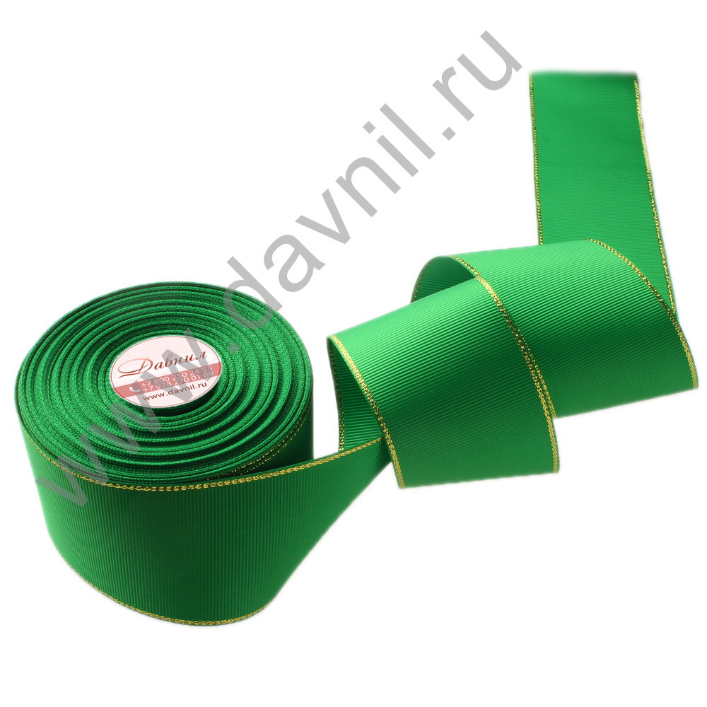 Лента репсовая с золотым люрексом 5 см*20 ярдов зелёная 19