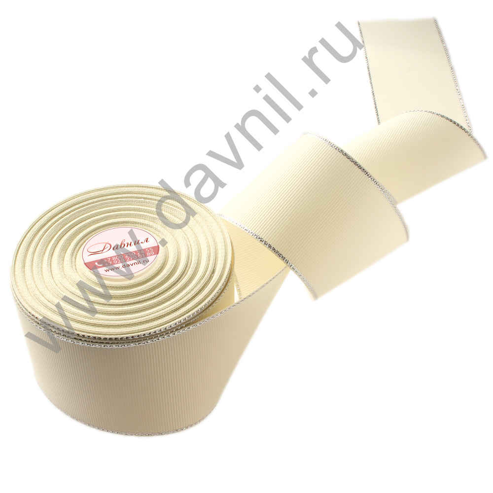 Лента репсовая с серебряным люрексом 5 см*20 ярдов айвори 08