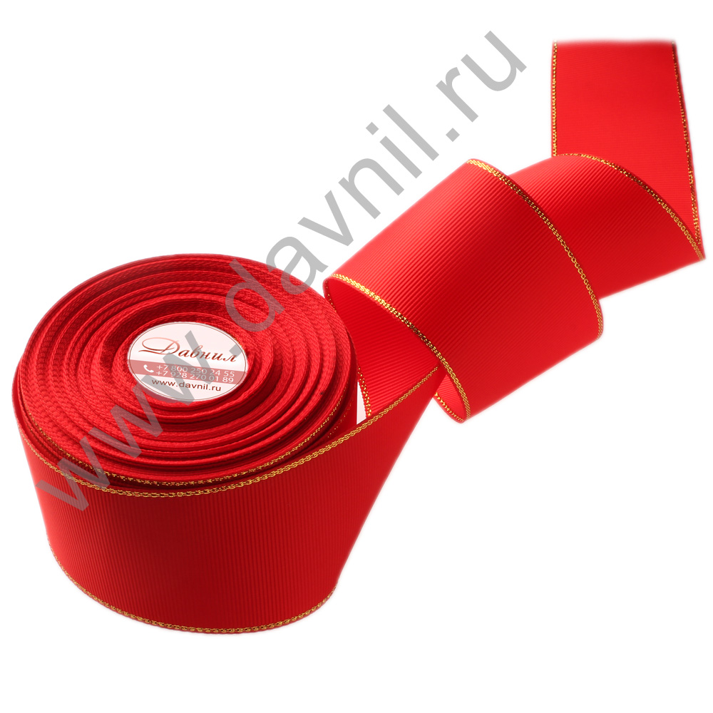 Лента репсовая с серебряным люрексом 5 см*20 ярдов красная 26