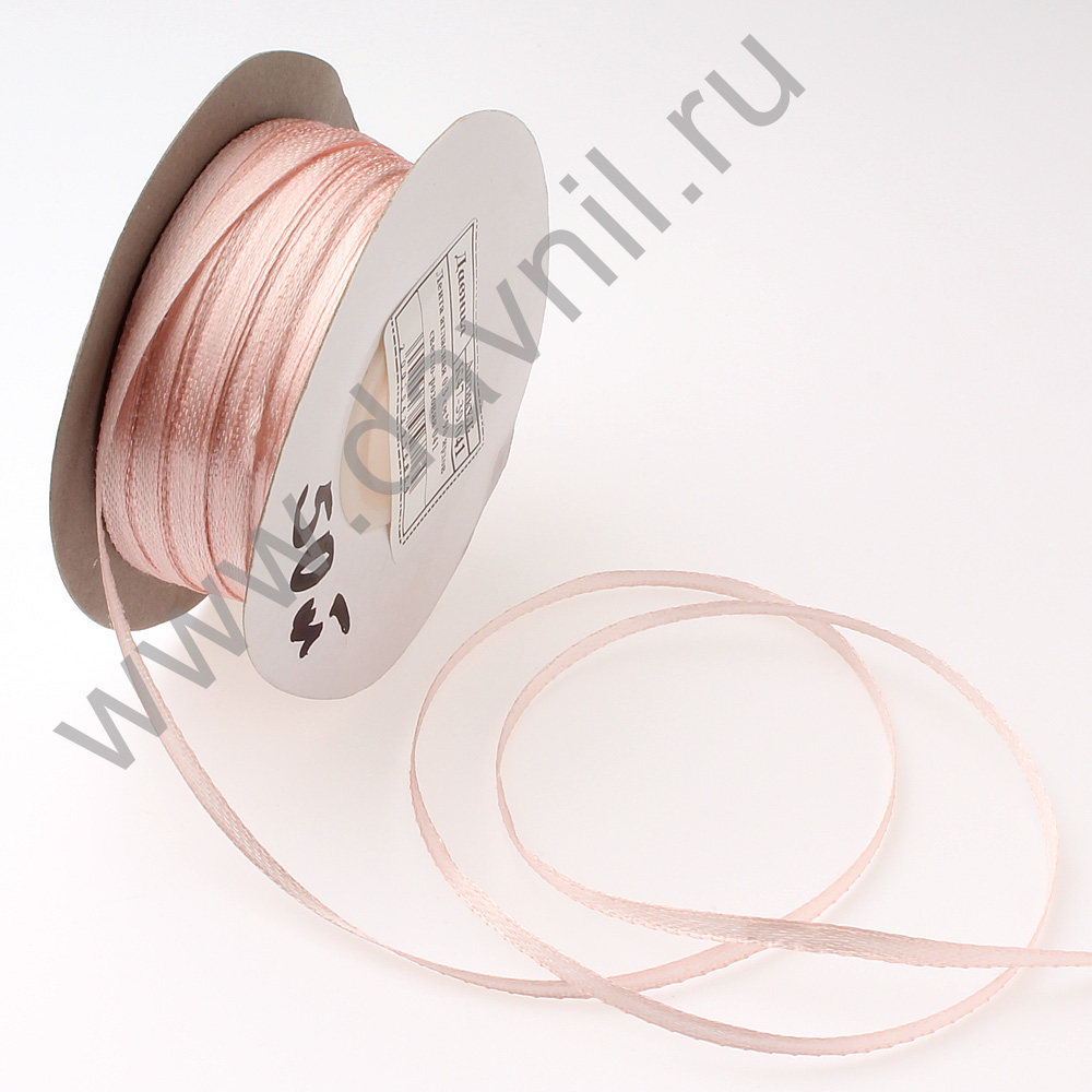 Лента атласная 0,3 см*90 ярдов светло-розовая 041