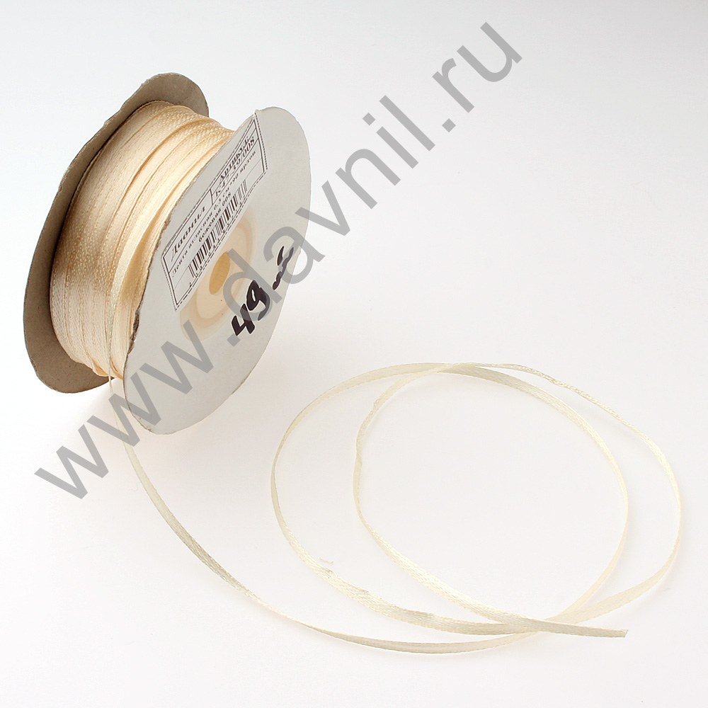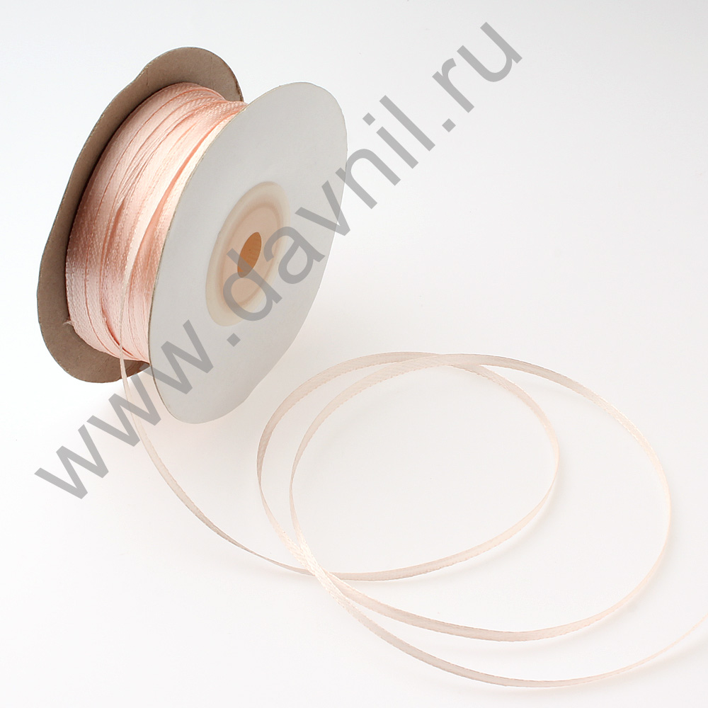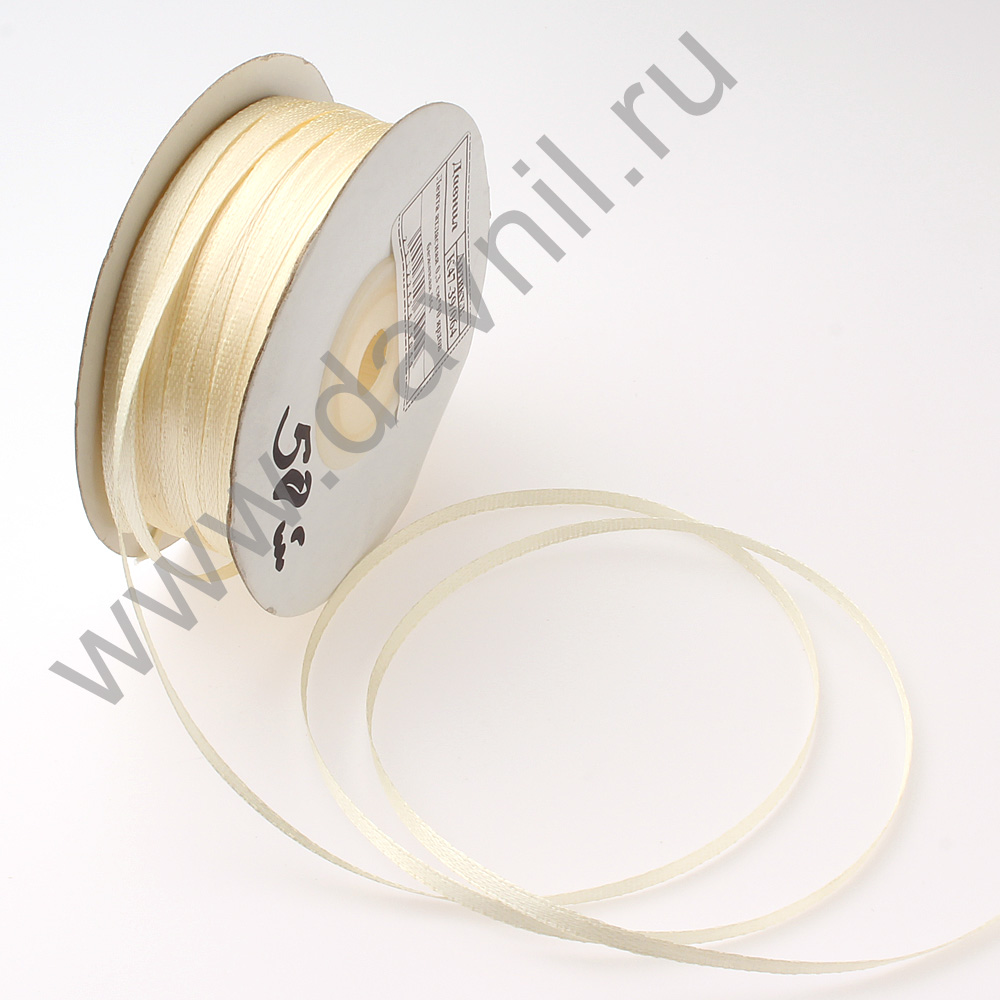 Лента атласная 0,3 см 90 ярдов бежевая 064