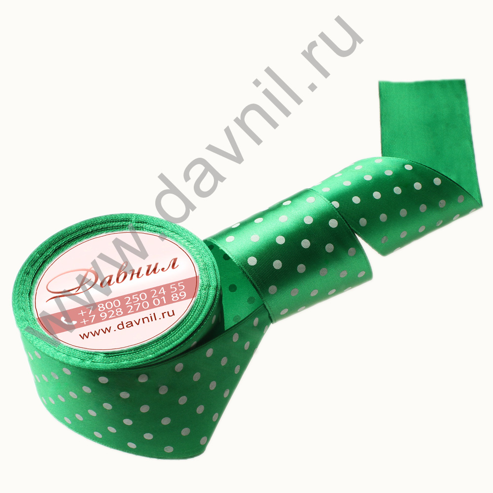 Лента атласная крупный горошек" 5 см*25 ярдов зелёная 019
