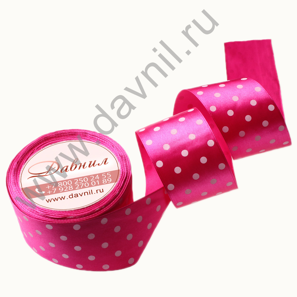 Лента атласная крупный горошек 5 см*25 ярдов фуксия 027