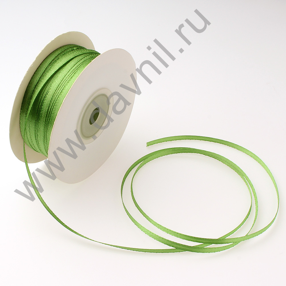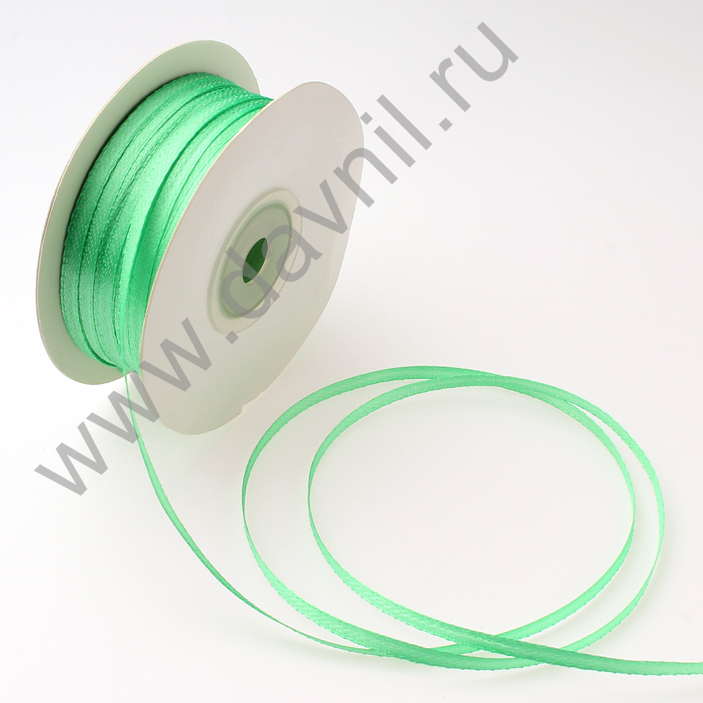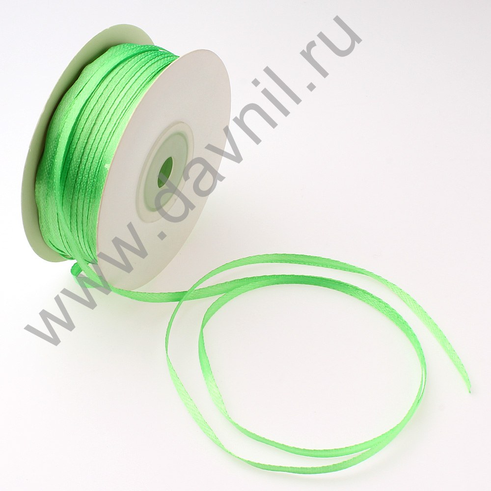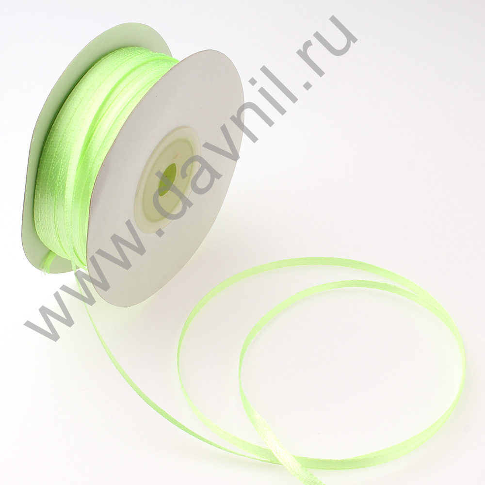Лента атласная 0,3 см*90 ярдов светло-зеленая 078
