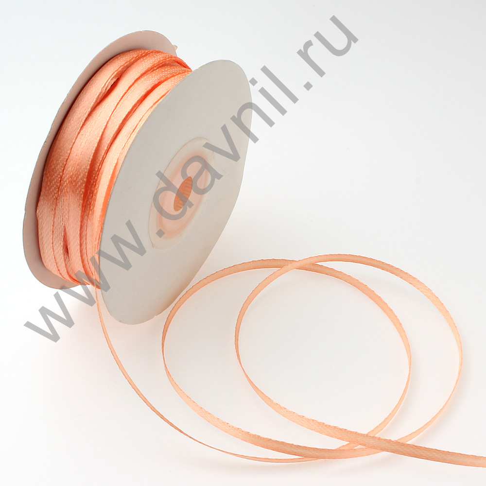 Лента атласная 0,3 см*90 ярдов персиковая 088