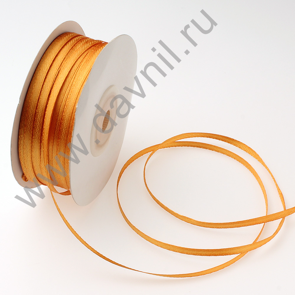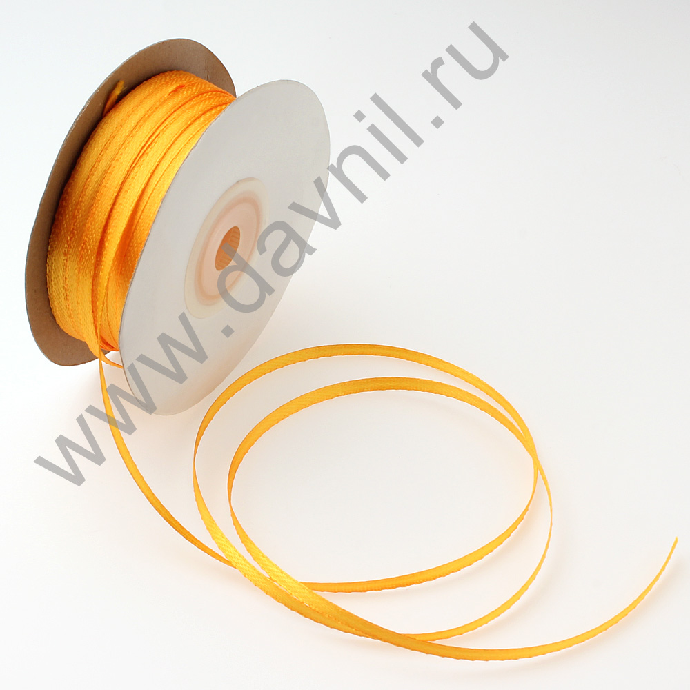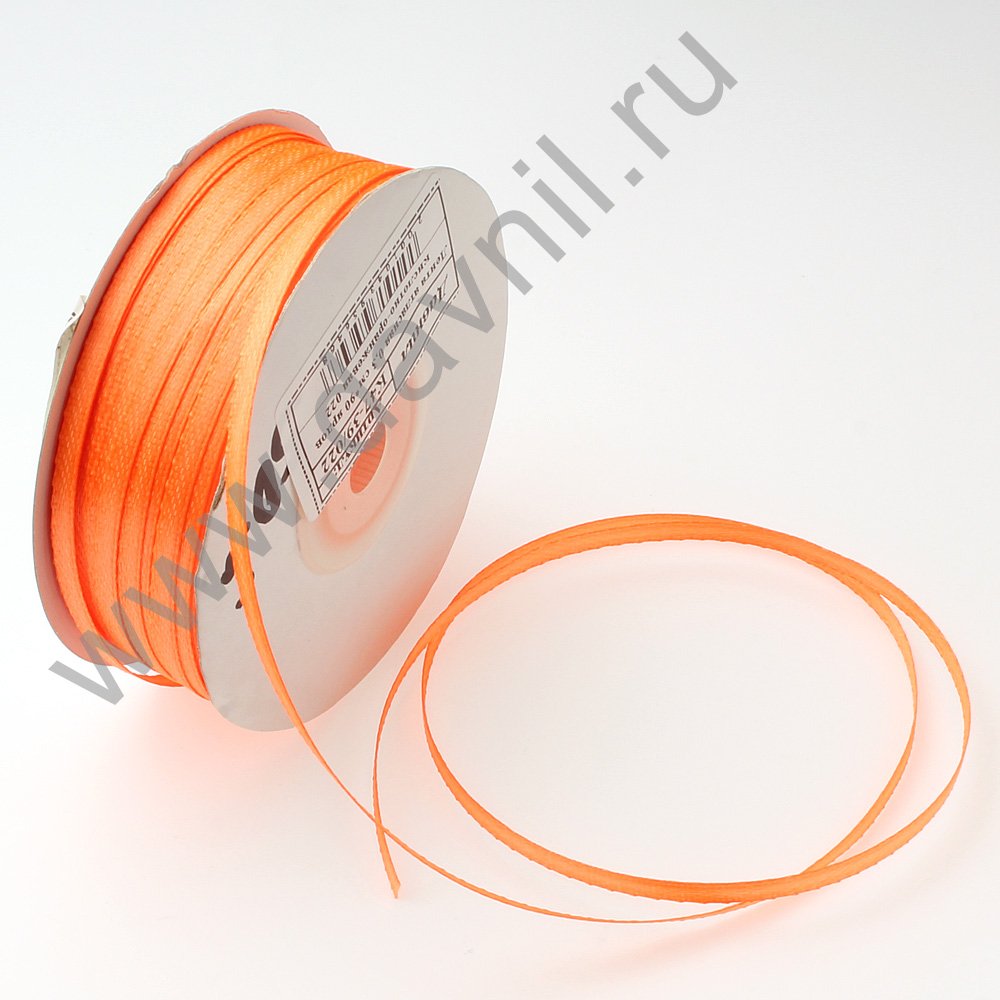 Лента атласная 0,3 см*90 ярдов ярко-оранжевая 023