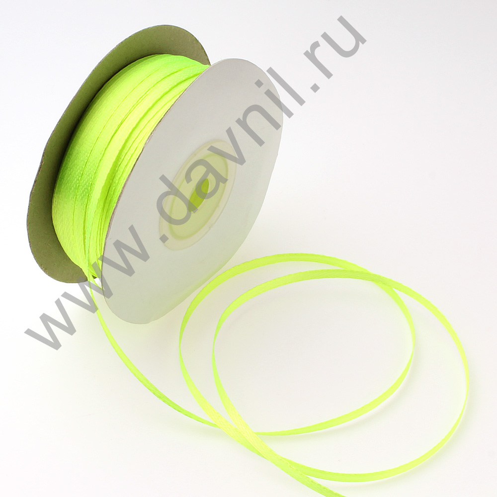 Лента атласная 0,3 см*90 ярдов лимонная 081
