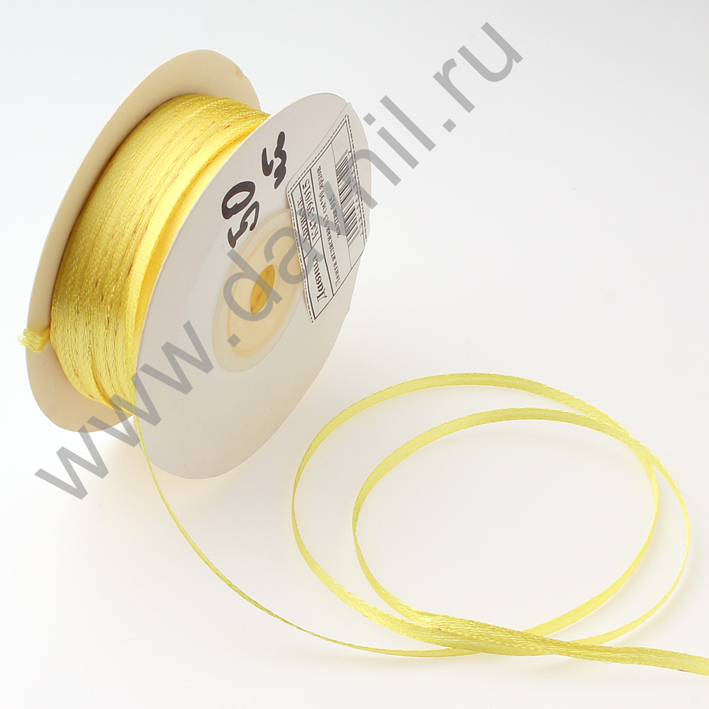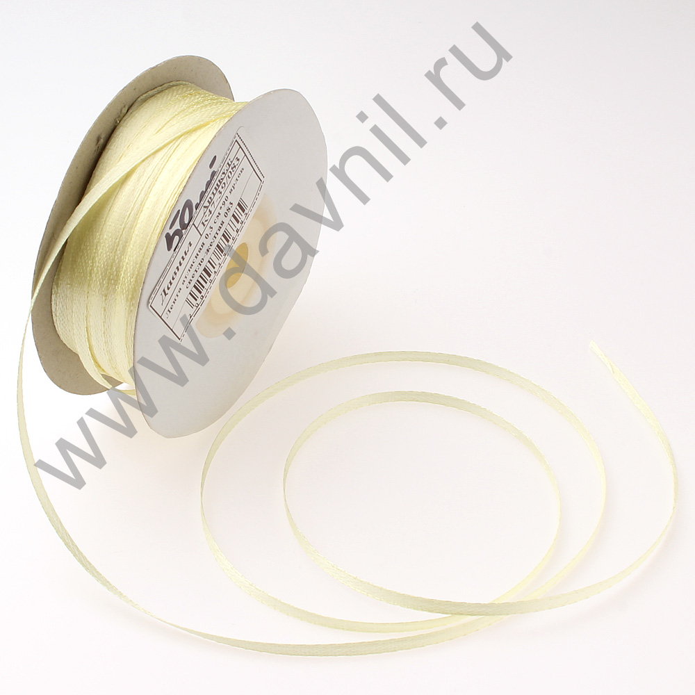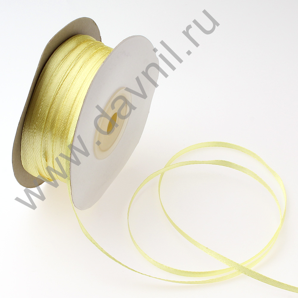 Лента атласная 0,3 см*90 ярдов светло-желтая 083