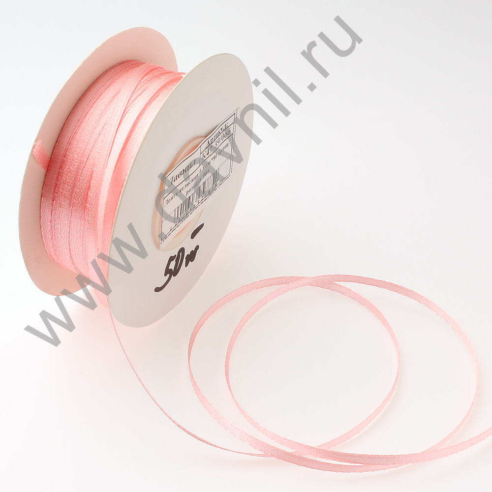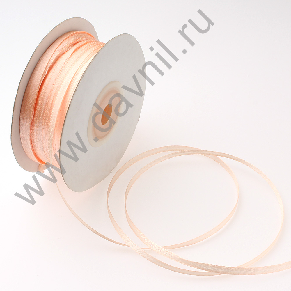 Лента атласная 0,3 см*90 ярдов светло-персиковая 124